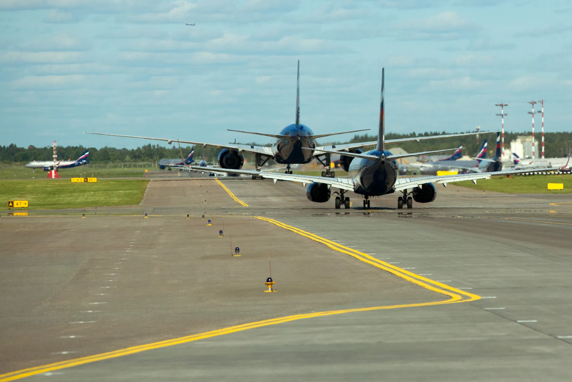莫斯科謝列梅捷沃機場的客機。攝影師:安德烈·魯達科夫/彭博社英國法官裁定,保險公司必須賠償因俄羅斯在入侵烏克蘭後採取反制裁措施而扣押的飛機租賃商和所有者,這一裁決可能使保險公司面臨數十億美元的賠付責任。