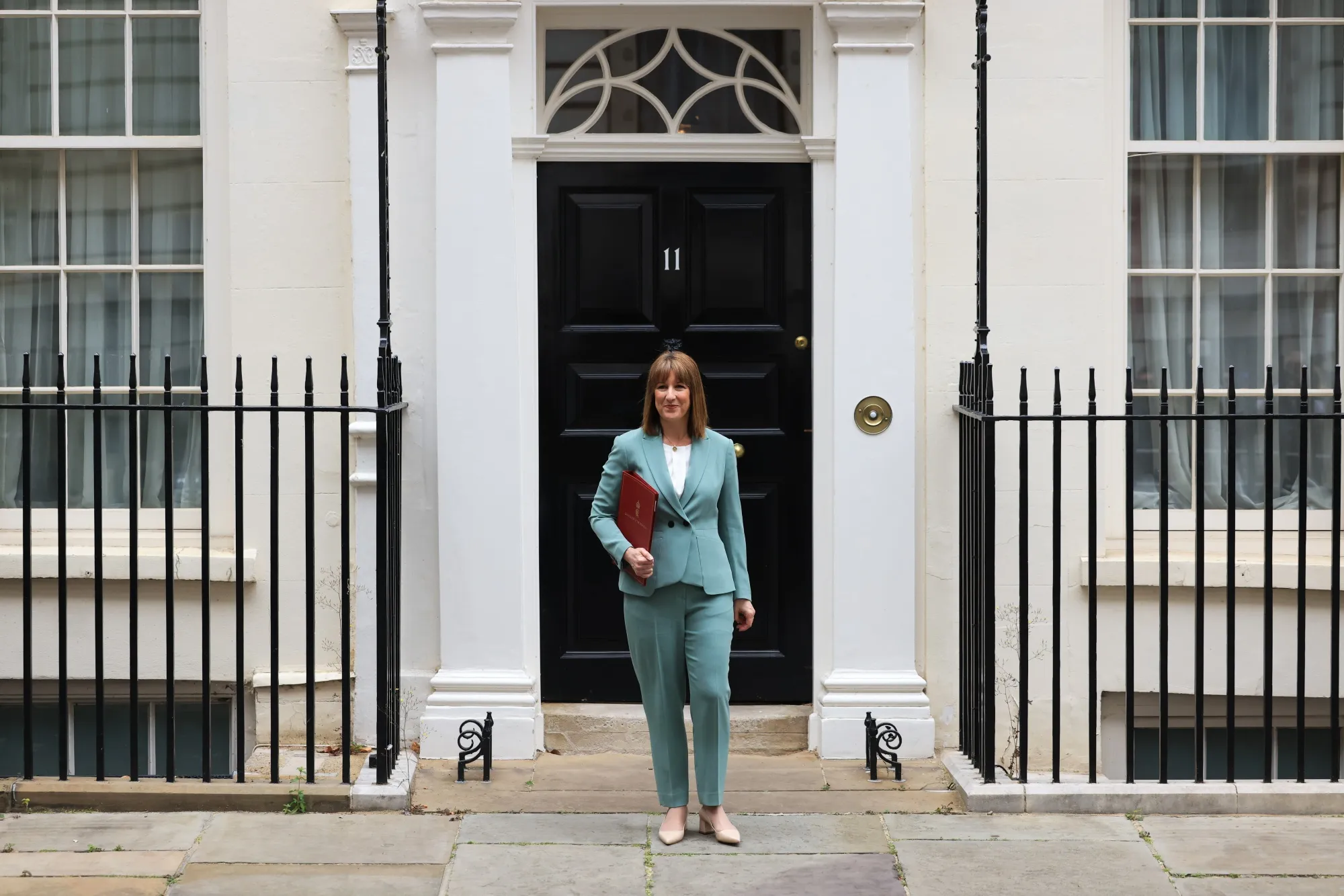 6月11日,英國財政大臣蕾切爾·裏夫斯在倫敦唐寧街11號外,準備提交支出審查報告。