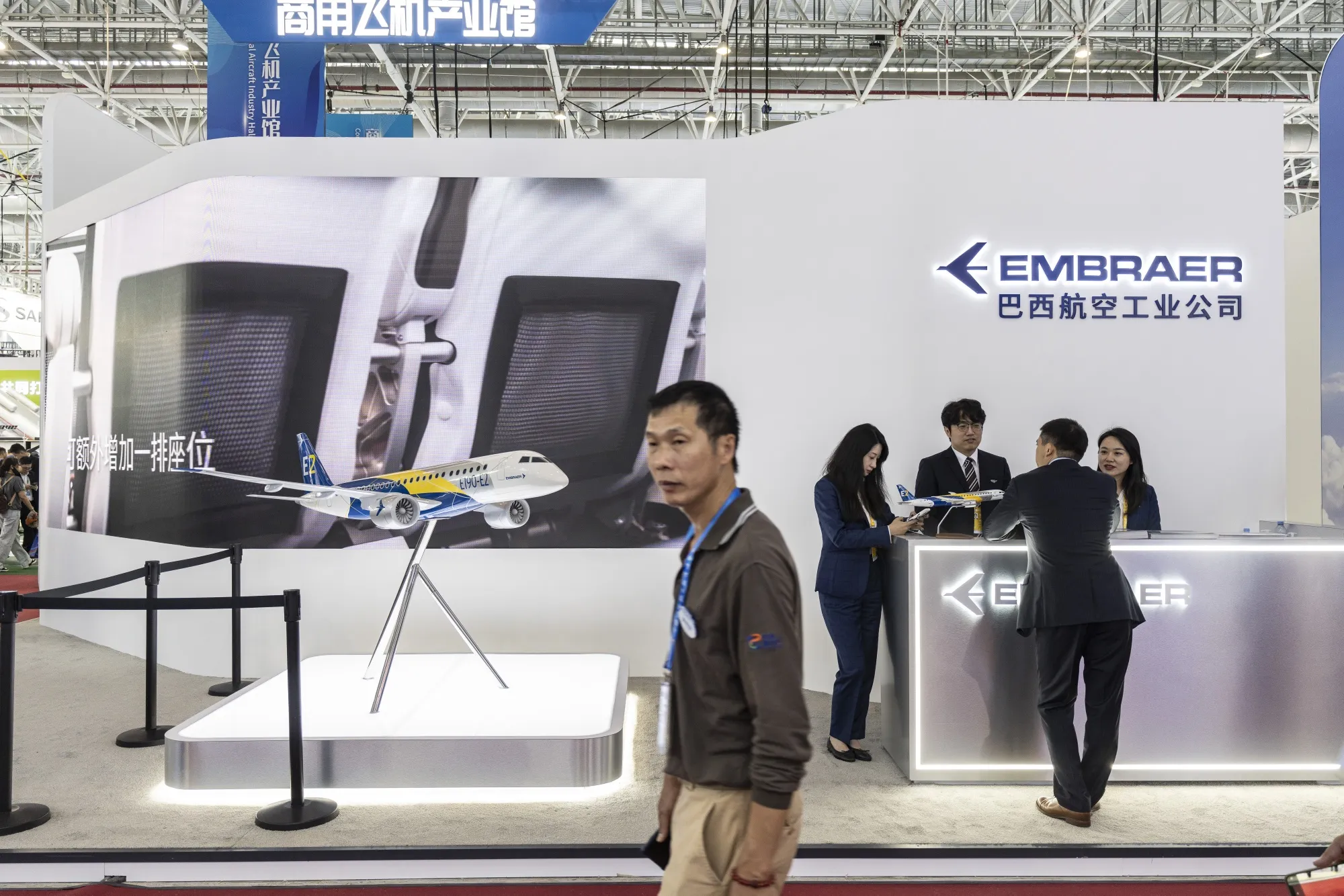 2024年11月中國珠海航展上展示的巴西航空工業公司E2型飛機模型。