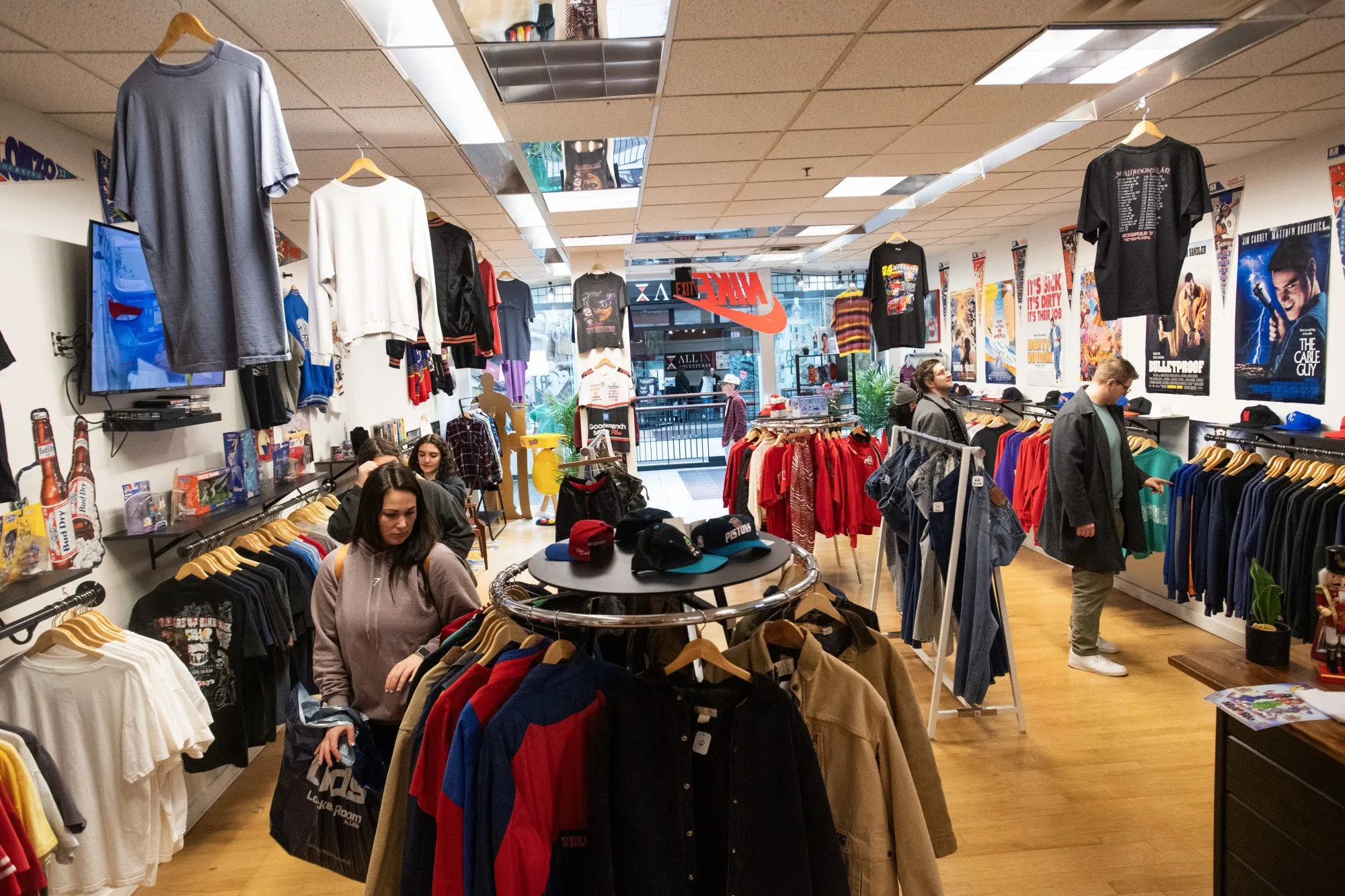 顧客們正在俄亥俄州哥倫布市的一家服裝店瀏覽商品。