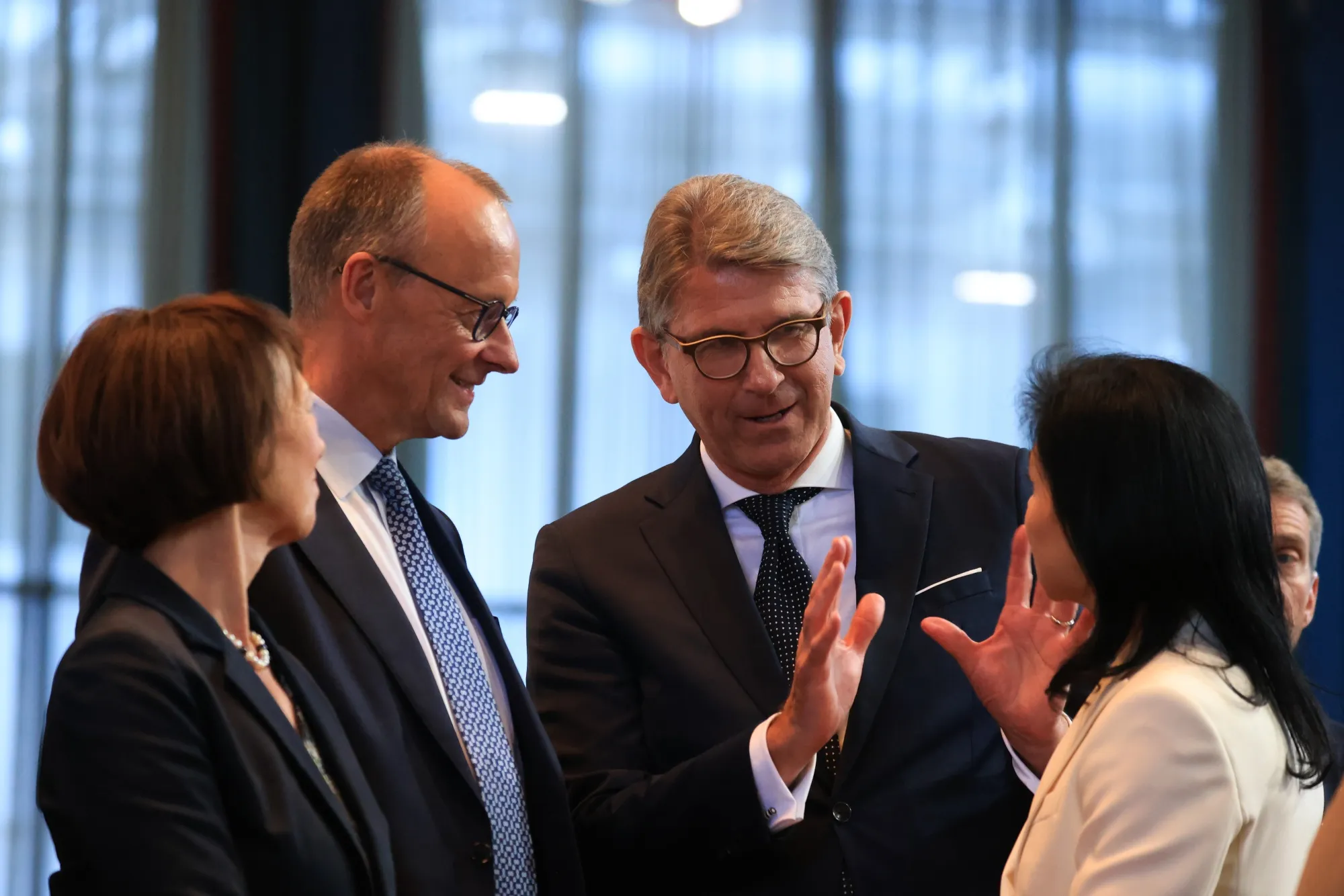 弗里德里希·默茨(左)和沃爾夫拉姆·魏默攝影師:克里斯蒂安·博奇/彭博社哈佛大學也就資金問題提起訴訟。