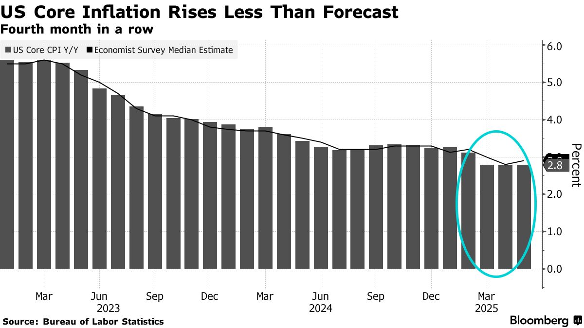 美國5月核心通脹漲幅低於預期,表明企業大多暫未將增加的關税成本轉嫁給消費者。