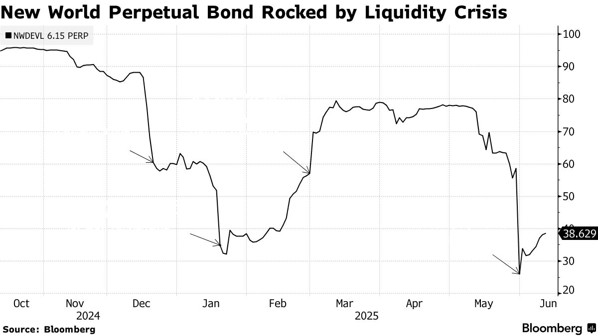 新世界債券持有人還面臨另一個緊迫問題:根據彭博新聞計算,過去三個月該公司永續債券平均貶值超過40%。