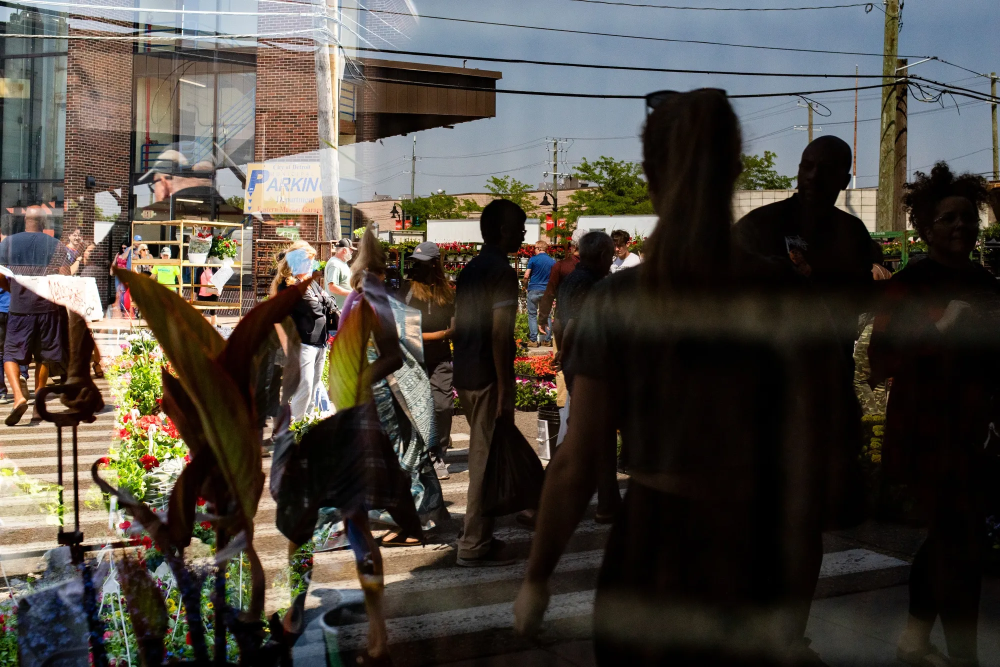 密歇根州底特律東方市場的購物者。