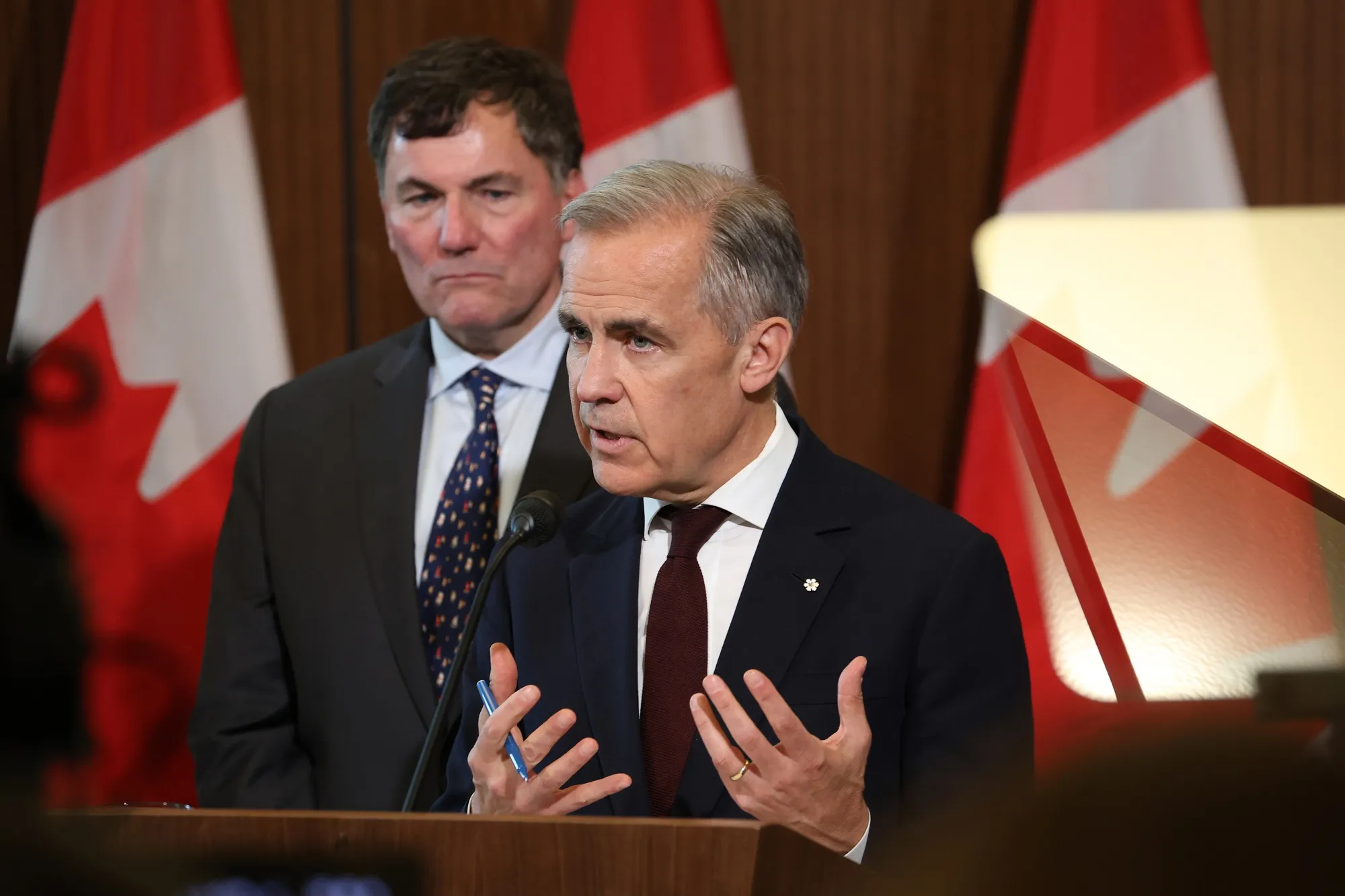加拿大總理馬克·卡尼與加美貿易部長多米尼克·勒布朗於6月6日會晤。攝影師:David Kawai/彭博社加拿大統計局數據顯示,去年11月至今年5月期間該國淨增近15.2萬個就業崗位,但失業率上升0.1個百分點至7%。值得注意的是,受關税衝擊影響,製造業同期淨流失4,700個崗位,且近幾個月裁員速度加快。