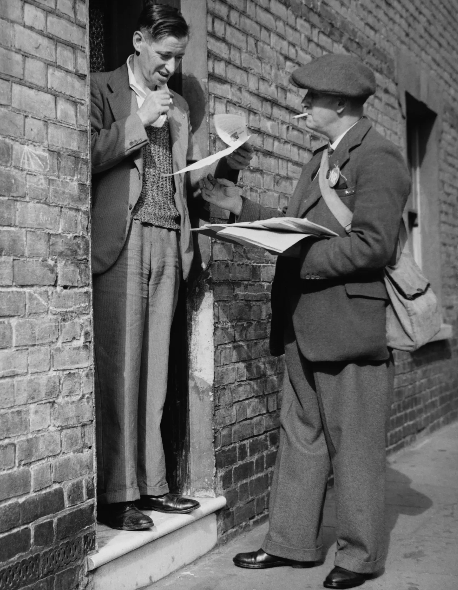 1949年英國人口普查期間,一名普查員向住户出示問卷,該普查旨在編制全國人力登記冊。來源:Hulton-Deutsch Collection/Corbis/Getty Images“你在覆蓋範圍/響應率上獲得的優勢,可能會在測量質量或內容特性上有所損失,”歐洲社會調查副主任埃裏克·哈里森表示。