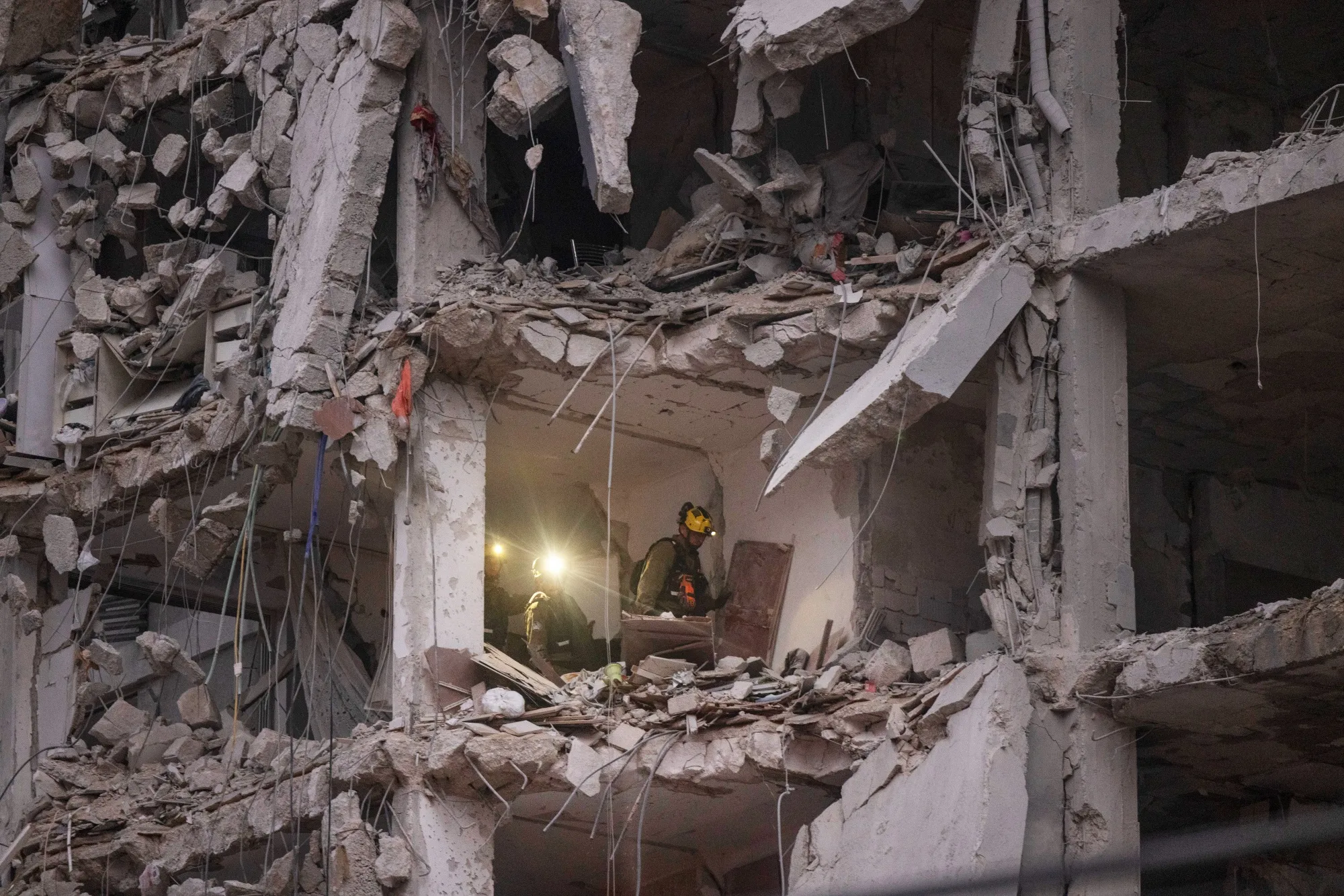 6月15日,以色列巴特亞姆市,救援人員正在搜索遭伊朗彈道導彈襲擊的建築。