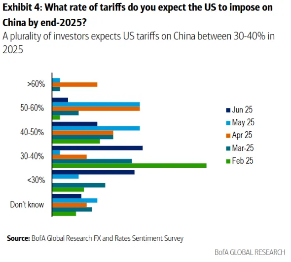 美國銀行的Ralf Preusser指出,特朗普與中國達成的三個月關税暫停期讓投資者降低了對關税升級的擔憂: