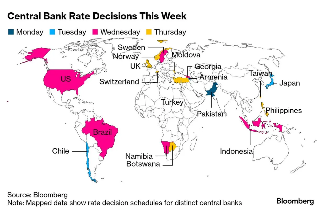 多家央行將在未來一週維持利率不變,同時繼續評估特朗普引發的貿易中斷帶來的影響。