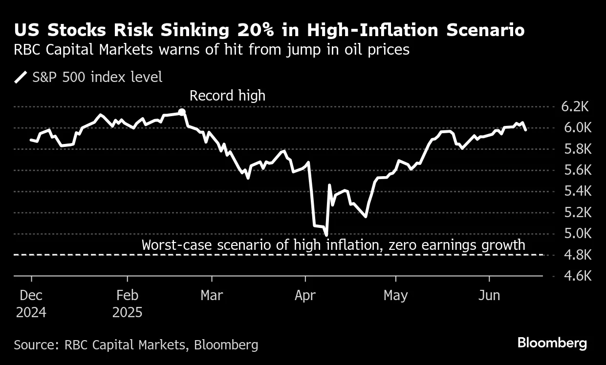 加拿大皇家銀行的分析顯示,如果出現通脹率飆升至4%的“嚴重”峯值、與2024年相比利潤零增長、美聯儲僅降息兩次以及10年期美國國債收益率維持在當前水平,基準指數可能在年底前跌至4800點——較當前水平下跌近20%。