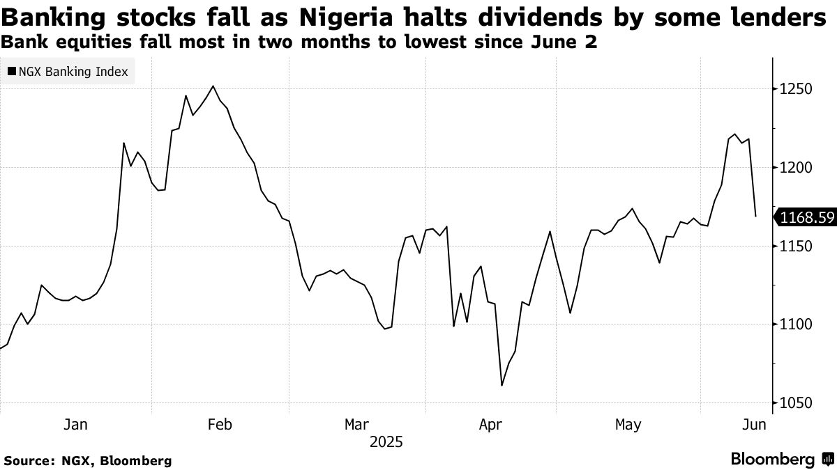 尼日利亞銀行股下跌 因央行暫停部分股息派發 - 彭博社