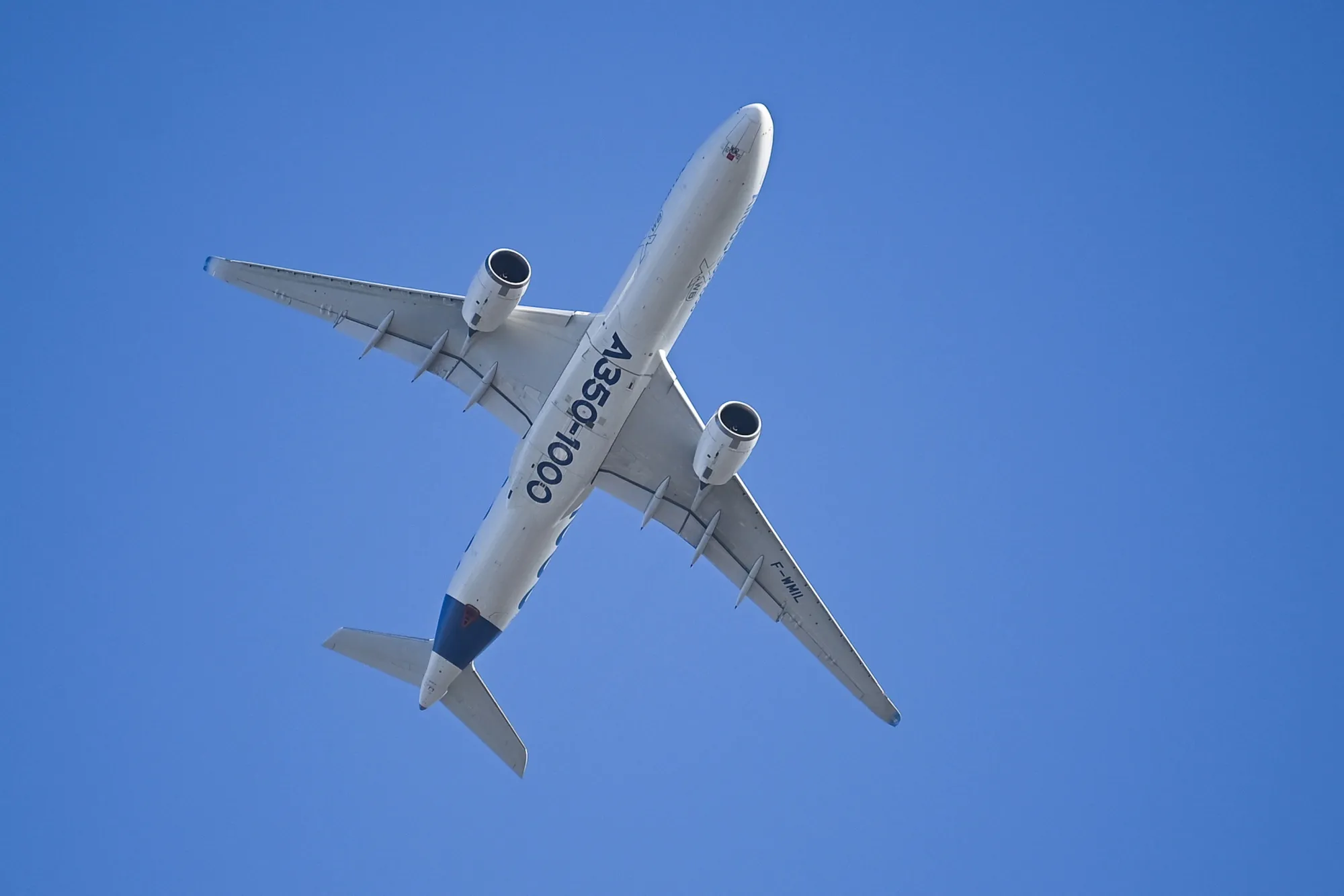 6月16日巴黎航展上,一架空客A350-1000飛機進行飛行表演。