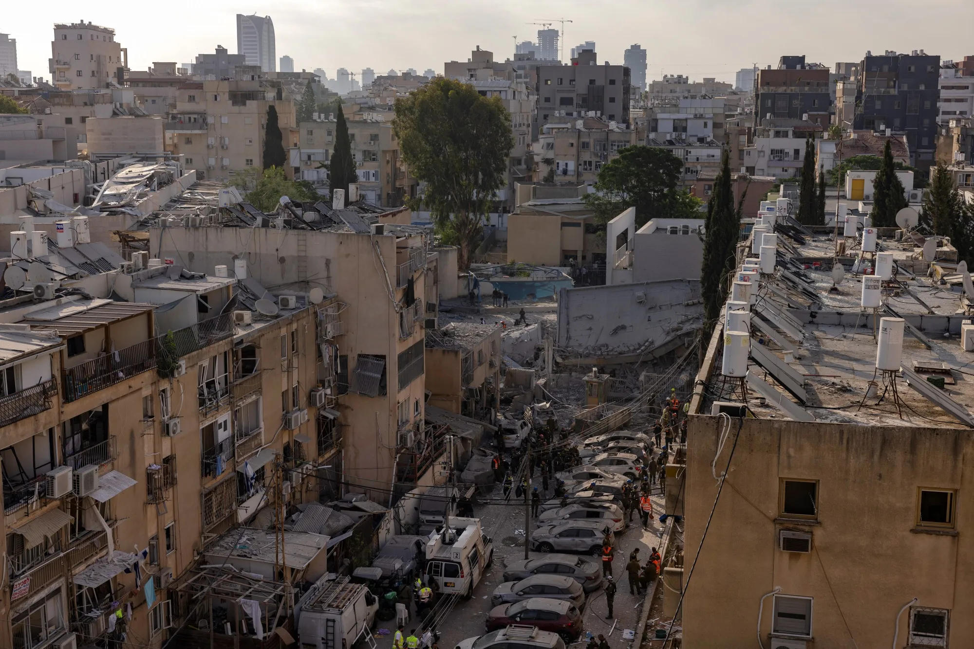 以色列拉馬特甘市一棟建築在週五的伊朗彈道導彈襲擊中受損。