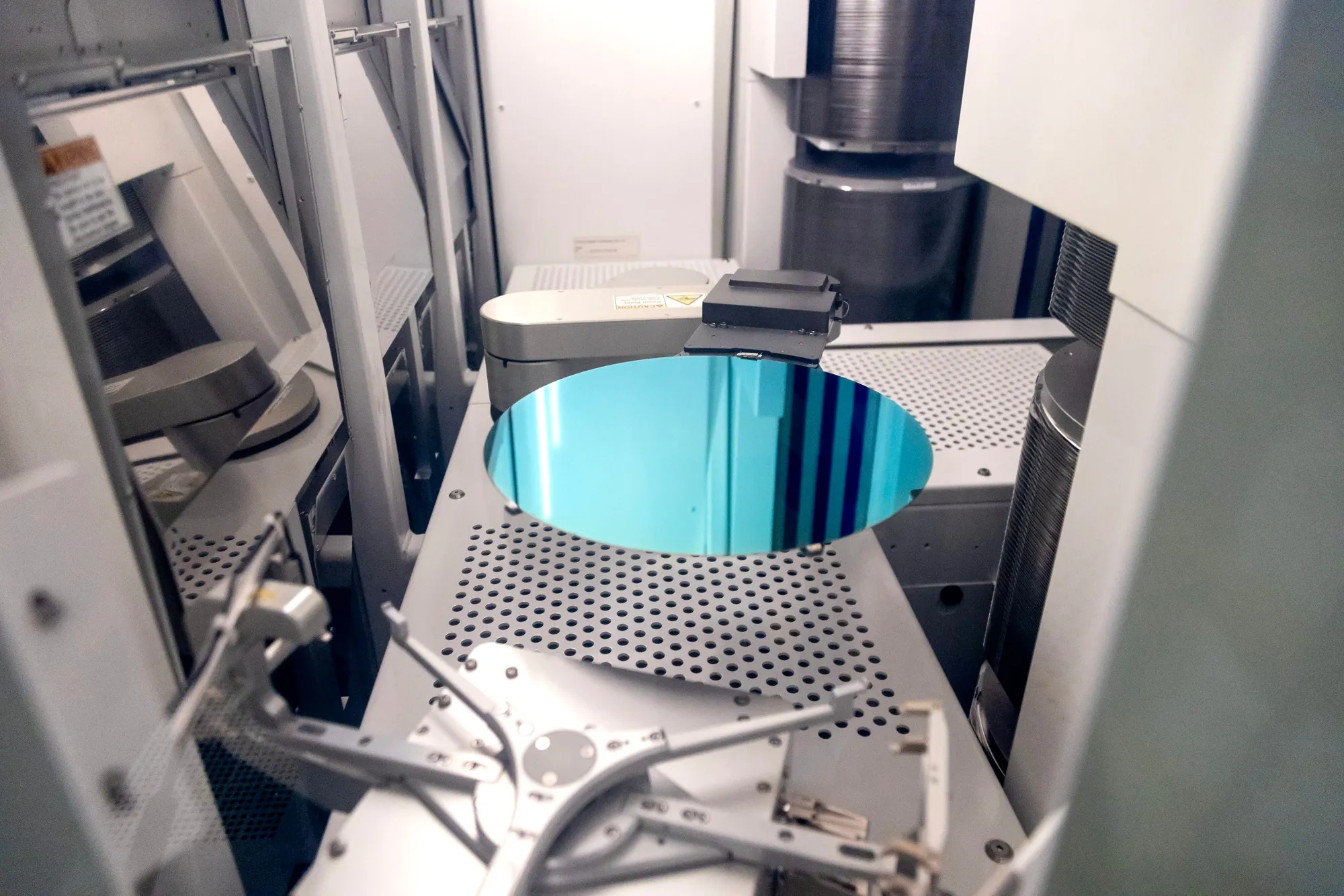美國愛達荷州博伊西市,美光科技工廠內一台裸晶圓分選機正在處理硅晶圓。