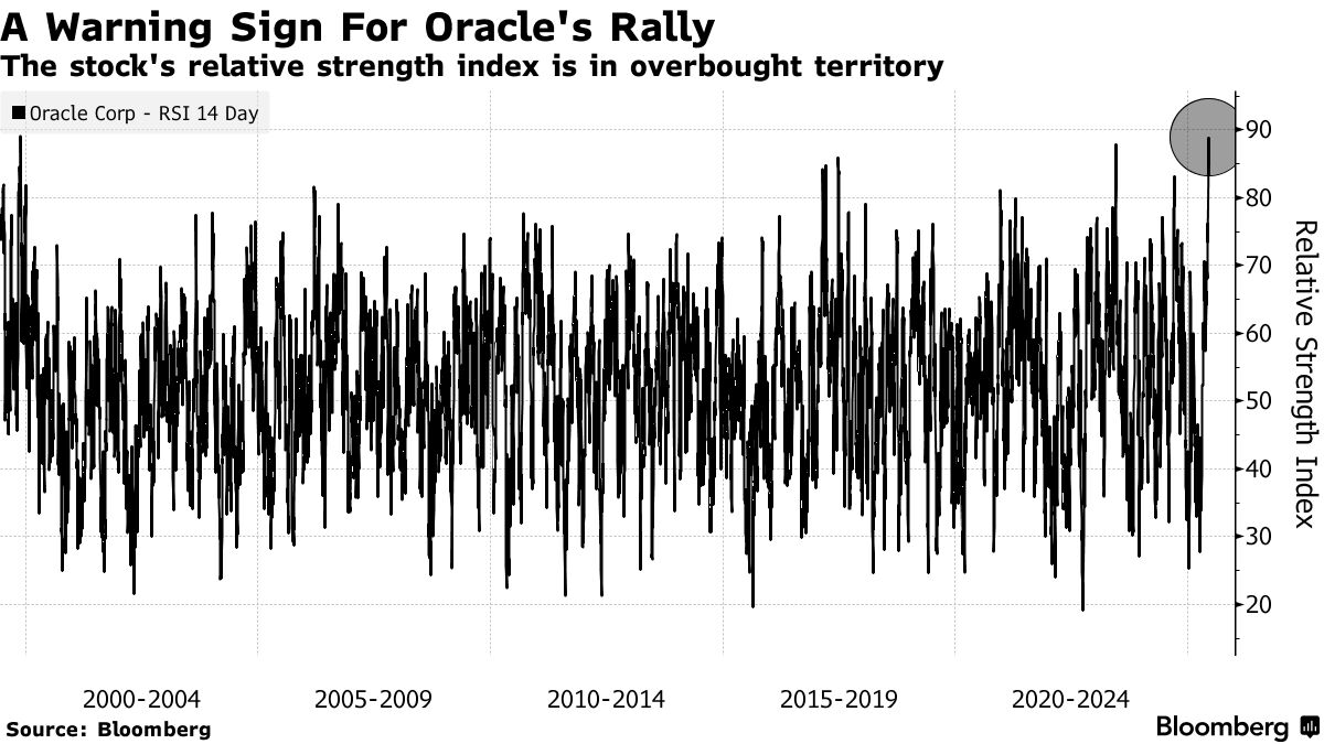 甲骨文公司的投資者正面臨一個關鍵抉擇。要麼聽從越來越多跡象發出的警告——這些指標表明該股漲勢過猛、過快;要麼繼續追逐由高漲的人工智能預期推動的另一輪上漲行情。