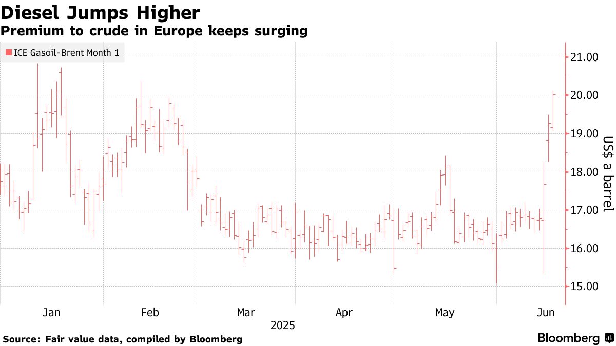 柴油價格飆升,以色列-伊朗戰爭加劇市場壓力 - 彭博社