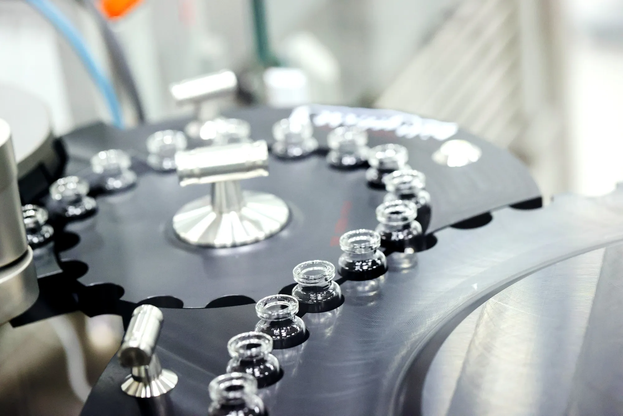 德國比恩德Gerresheimer醫用玻璃器皿工廠的生產線上,玻璃瓶正被傳送加工。