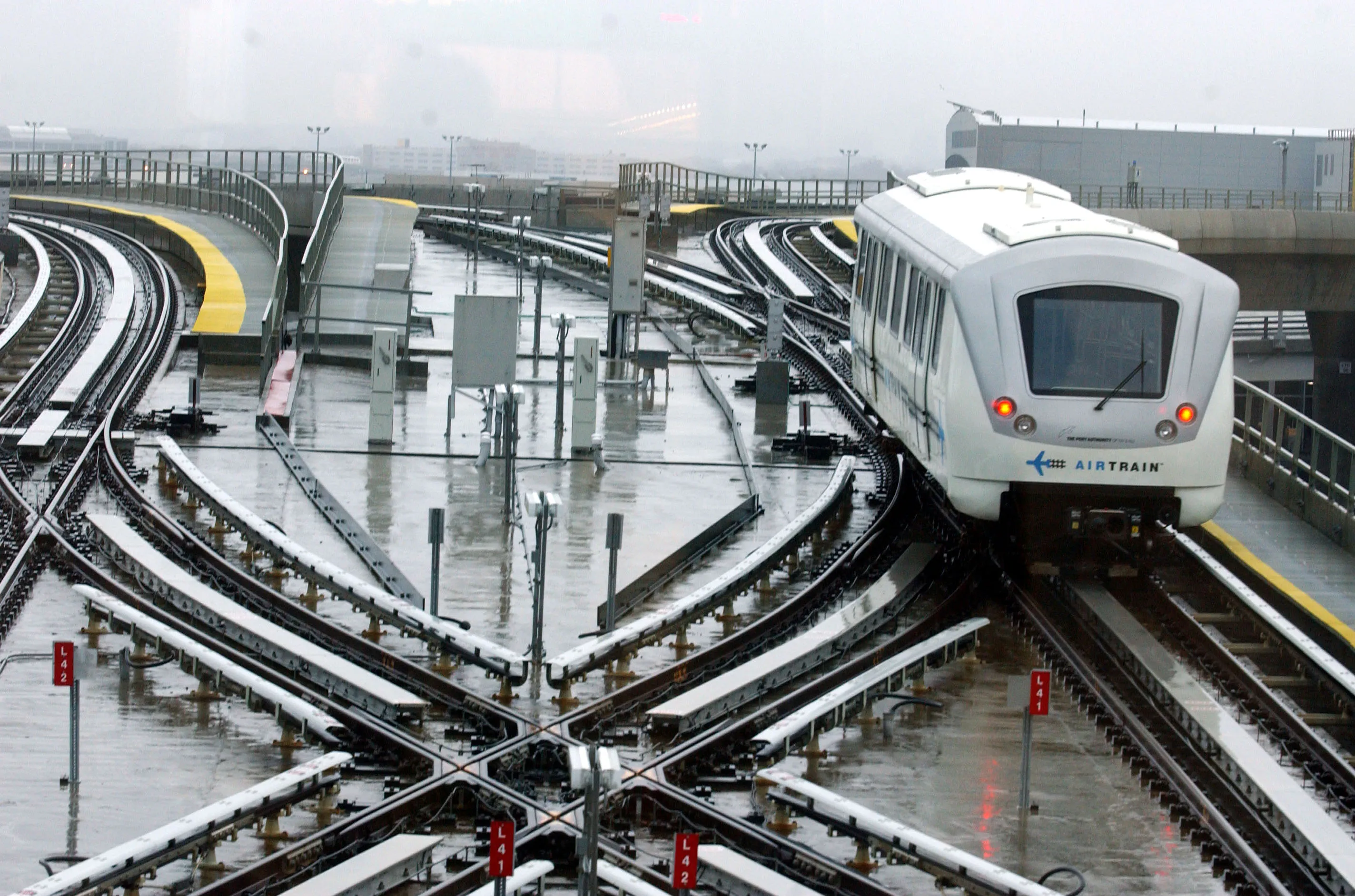 2003年12月17日,肯尼迪國際機場空中列車在紐約皇后區投入運營首日。攝影師:拉明·塔拉伊/彭博新聞社為緩解紐約最繁忙機場施工高峯期的道路擁堵,今夏往返肯尼迪國際機場的旅客捷運系統票價將下調50%。