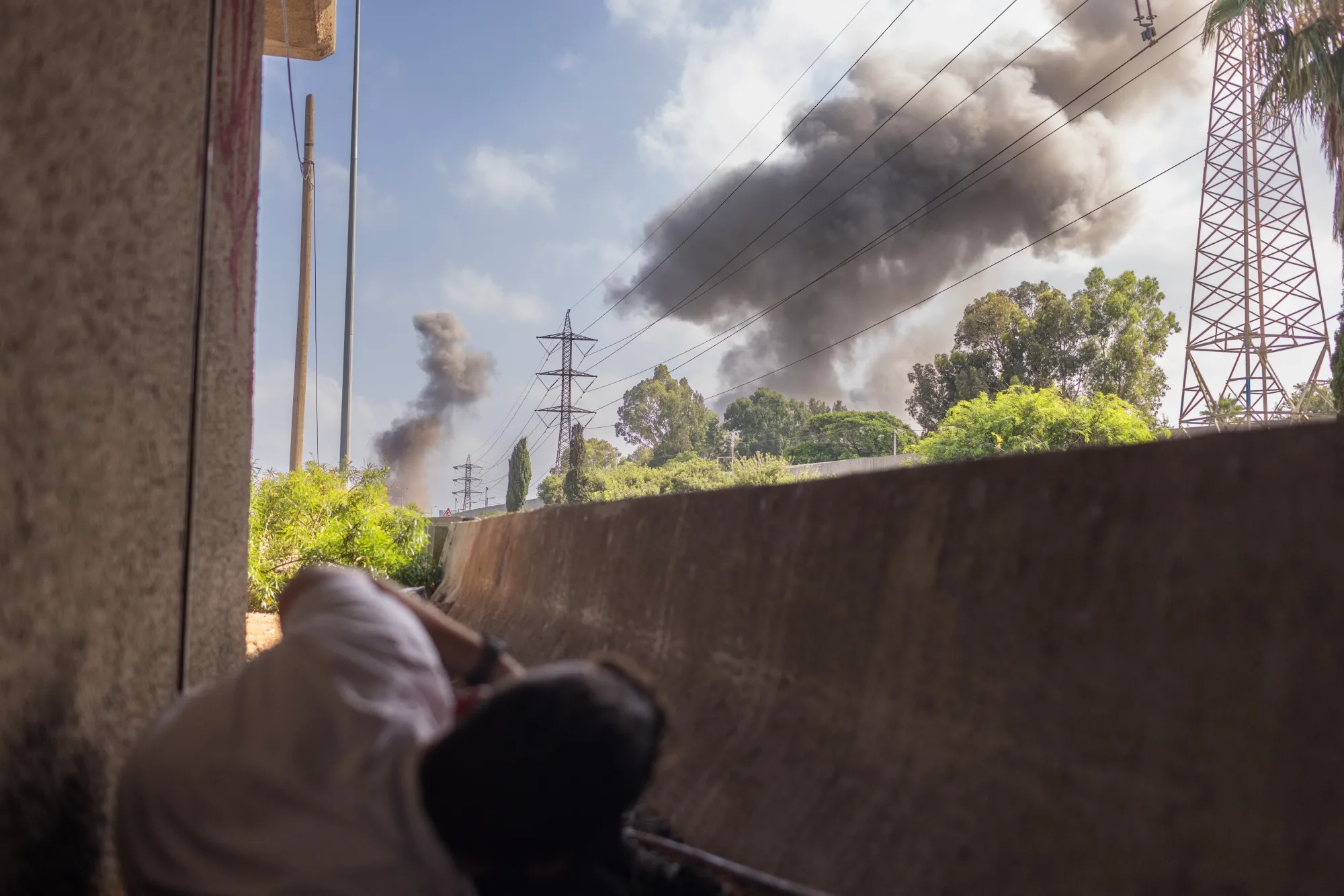 週二,伊朗導彈襲擊以色列赫茲利亞後升起的煙霧。