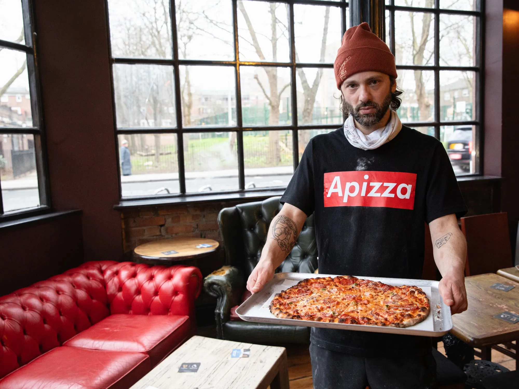 倫尼阿披薩的創始人曾與人合開軟件公司,直到疫情讓他的職業生涯轉向。劉易斯痴迷於適合酒吧享用的薄底紐黑文披薩,當時英國無處可尋,於是他專程前往美國康涅狄格州,朝聖著名的弗蘭克佩佩和薩莉披薩店。如今在暗色牆面的貝德福德酒館裏,劉易斯每五分鐘就從烤箱取出披薩,耳機裏轟鳴着鑽頭音樂:“這能讓我保持專注。“他常與薩莉店前經理雷·聖地亞哥視頻通話炫耀作品(其狂熱程度令薩莉店在社交媒體拉黑他,聲稱其試圖竊取配方)。