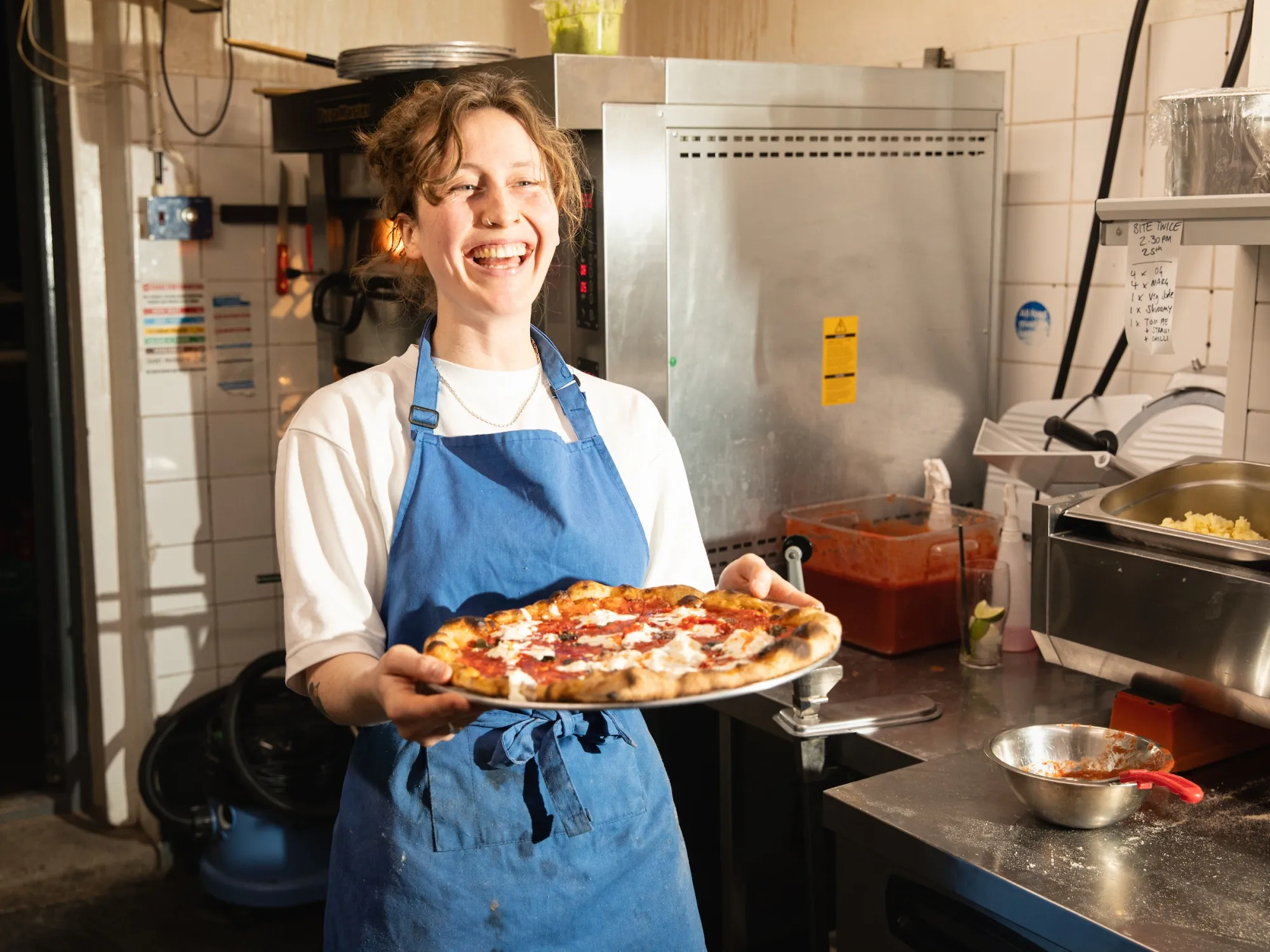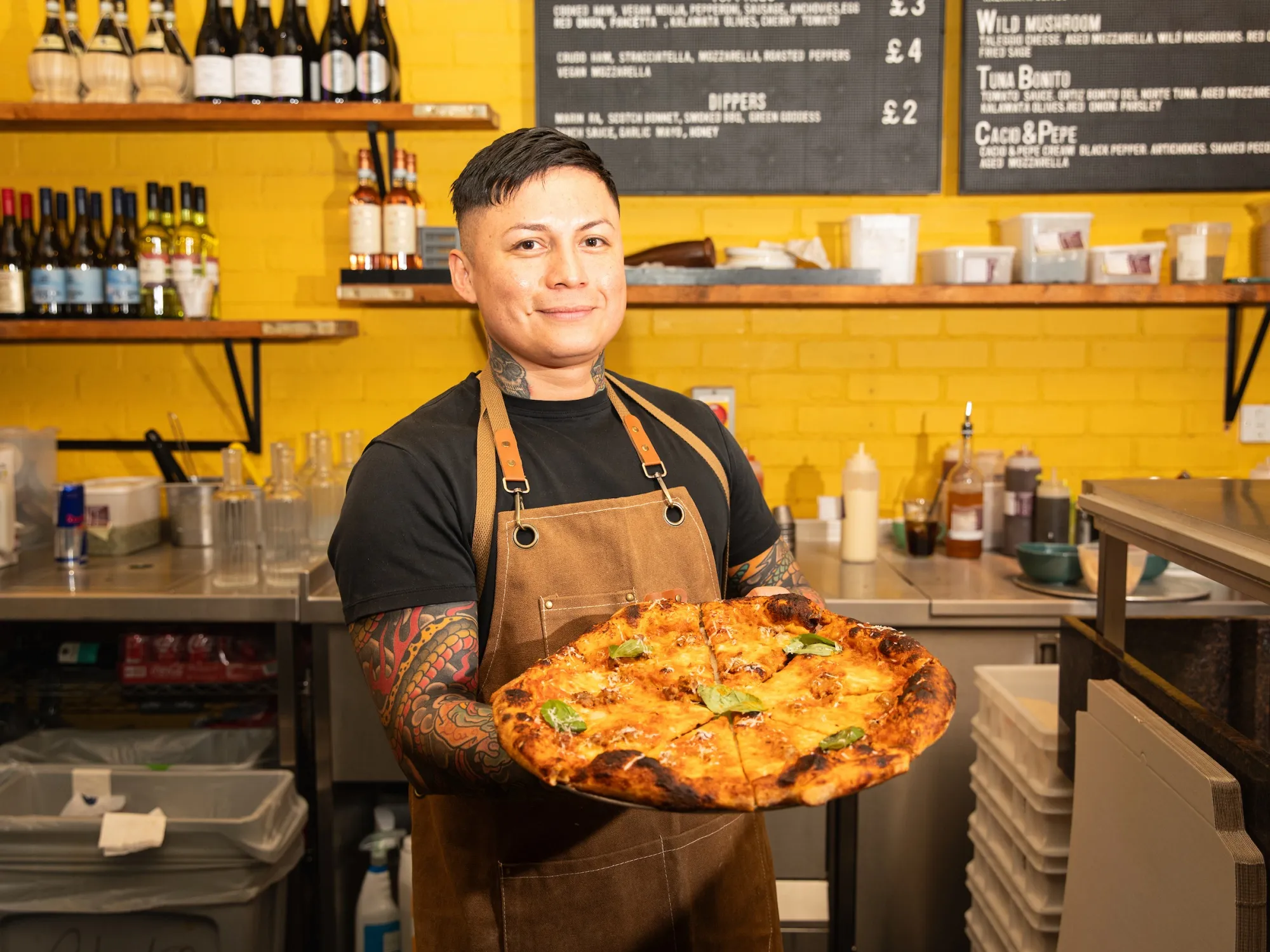 德萊如今堪稱英國披薩界元老。她在布萊頓讀大學時就開始靠做披薩賺外快。創立流動披薩生意前,疫情期間她在女友後院製作外賣披薩。其招牌是經過72小時冷發酵的輕薄餅底(比標準紐約切片更薄),口感柔韌有嚼勁。菜單上的披薩口味略顯另類:常駐特色款Gozee顛覆傳統四奶酪組合,將馬蘇裏拉、馬斯卡彭、戈貢佐拉和格拉納帕達諾奶酪與煙燻甜辣椒醬(15英鎊)完美融合。