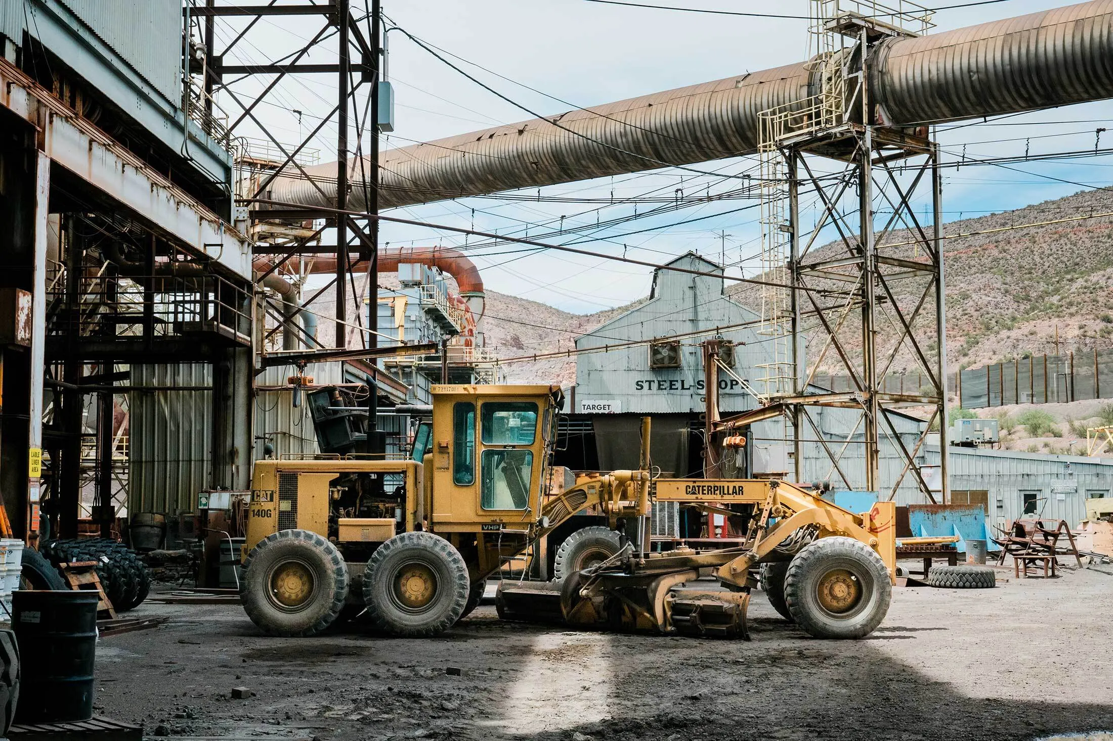 鳳凰城東南約95英里處,海登封存設施外停放的重型機械。攝影師:凱特琳·奧哈拉為《彭博商業週刊》拍攝談及金屬工業,人們通常會聯想到廣闊的採礦作業或終端產出的成品,從廚具到電子產品再到管道系統。而連接這兩端的冶煉廠和精煉廠正是這一過程的核心,它們通過高温、酸液和化學制劑將原材料提純至最純淨形態。由於監管政策、能源成本、勞動力因素及中國廉價產品的激烈競爭,該工藝在美國幾乎已成為成本高昂到令人卻步的產業。