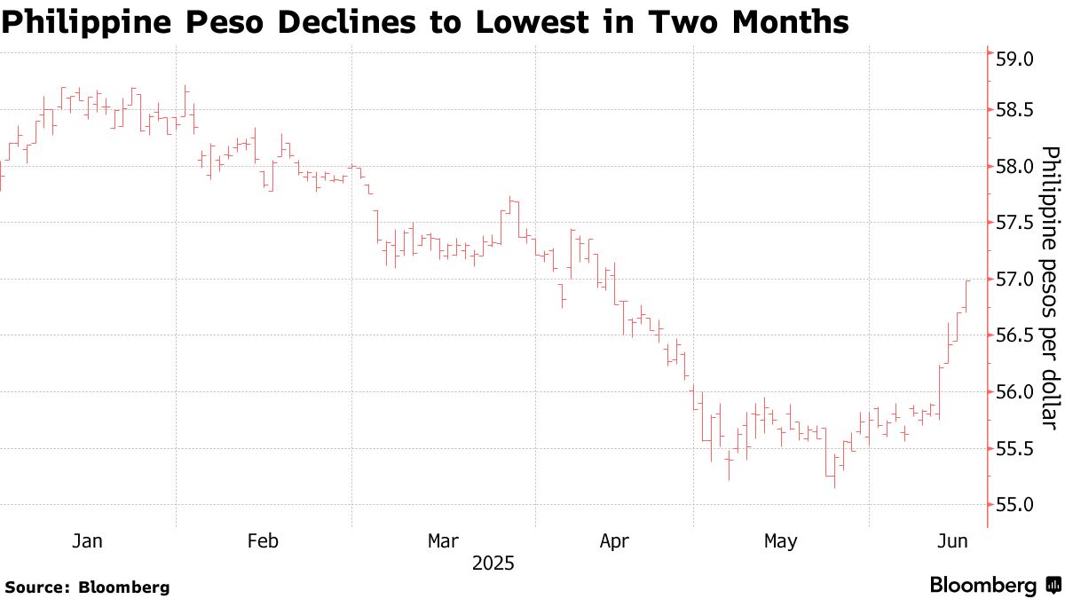 埃利·雷莫洛納攝影師:林益/彭博社菲律賓將容忍其貨幣跌至兩個月低點,央行行長表示,在全球避險情緒面前,干預措施不會有效。