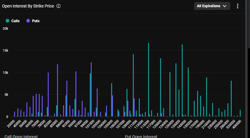 加密貨幣衍生品交易所Deribit的看跌/看漲成交量比率在過去24小時內飆升至2.17,反映出強烈的避險傾向。看跌期權(通過賦予合約持有者以特定價格賣出的權利來提供下跌保護)需求激增,尤其是短期合約。對於6月20日到期的期權,執行價為10萬美元的看跌期權未平倉合約量目前位居榜首,看跌/看漲比率達1.16,凸顯市場對短期價格下跌的擔憂。