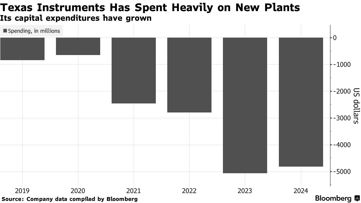 德州儀器通過向不滿的投資者保證,增加支出只是暫時的高峯——一旦完成猶他州工廠的改造和謝爾曼設施的建造,公司將放緩資本支出並恢復提供更高回報,從而安撫了投資者情緒。