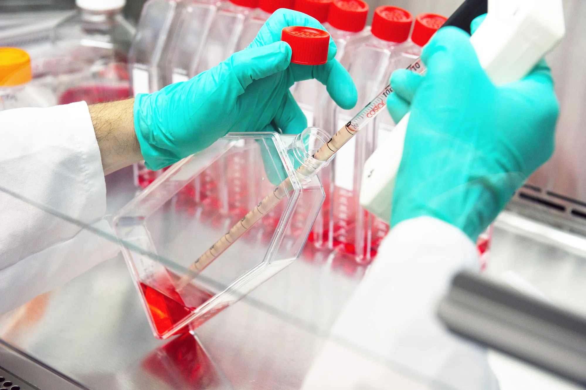 一位科學家在加州福斯特城的吉利德科學公司實驗室製備人類蛋白質。