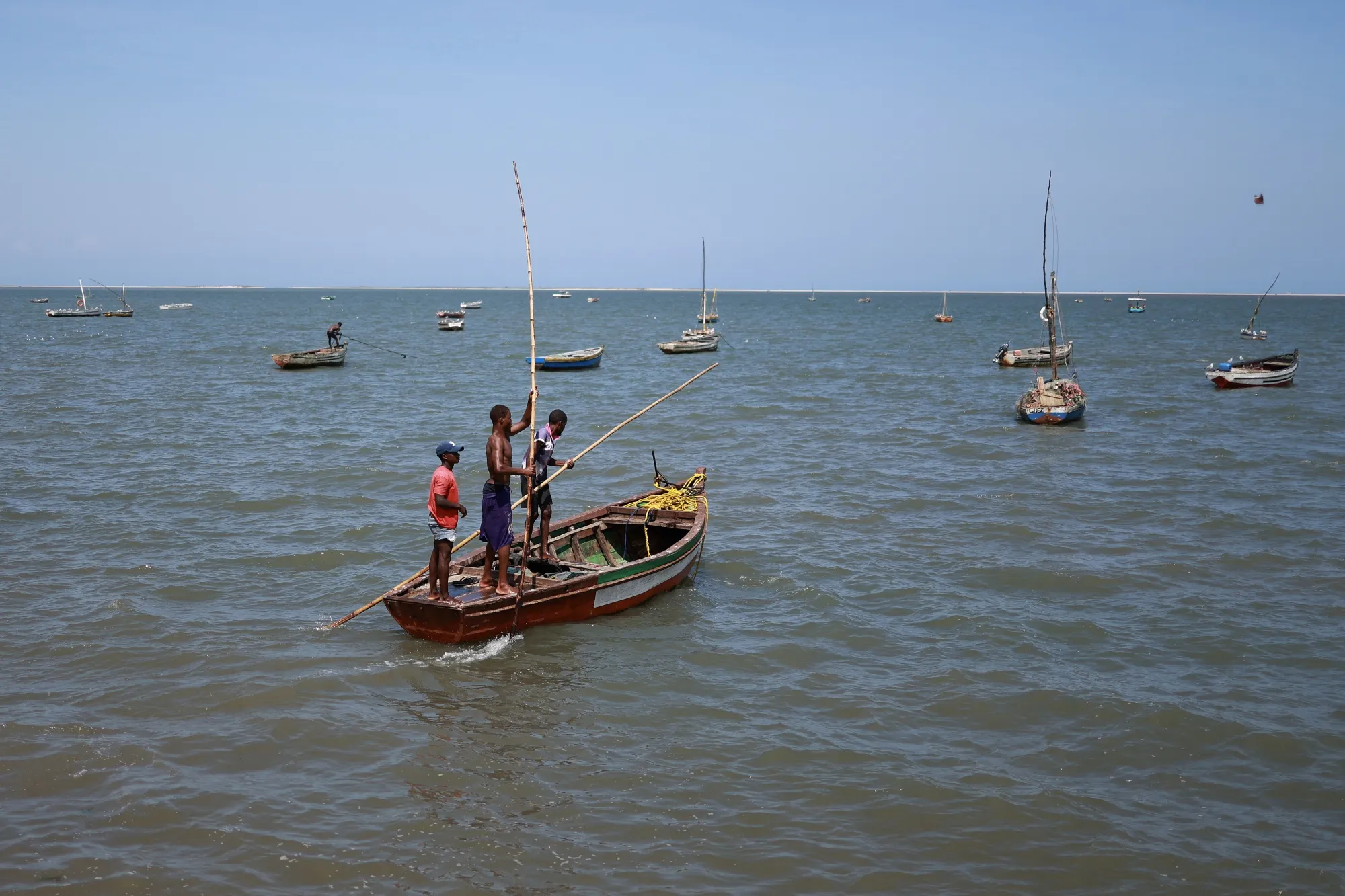 漁民們駕駛船隻離開莫桑比克馬普托的Costa do Sol非正式魚市。