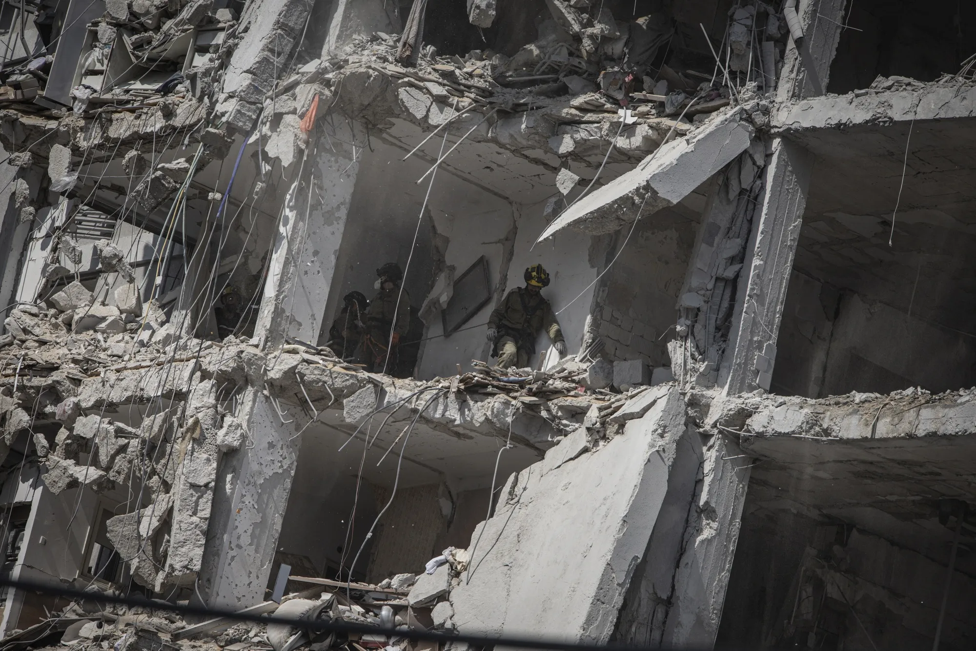 6月15日,以色列應急人員在巴特亞姆遭伊朗導彈襲擊後的建築廢墟中搜尋受害者。攝影師:約翰·韋塞爾斯/法新社/蓋蒂圖片社