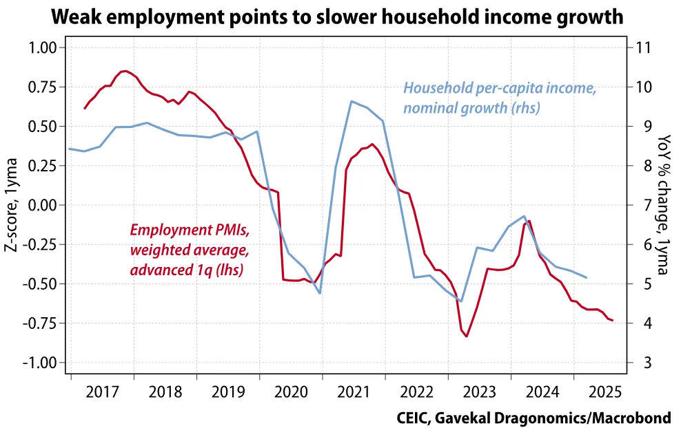 龍洲經訊中國研究總監安德魯·巴特森在6月18日的報告中指出,若北京真正致力於提升家庭消費,應將財政和貨幣政策與收緊勞動力市場及擺脱通縮掛鈎。但在就業和物價數據相對疲軟後,並未出台新政策。這表明該計劃另有目標。