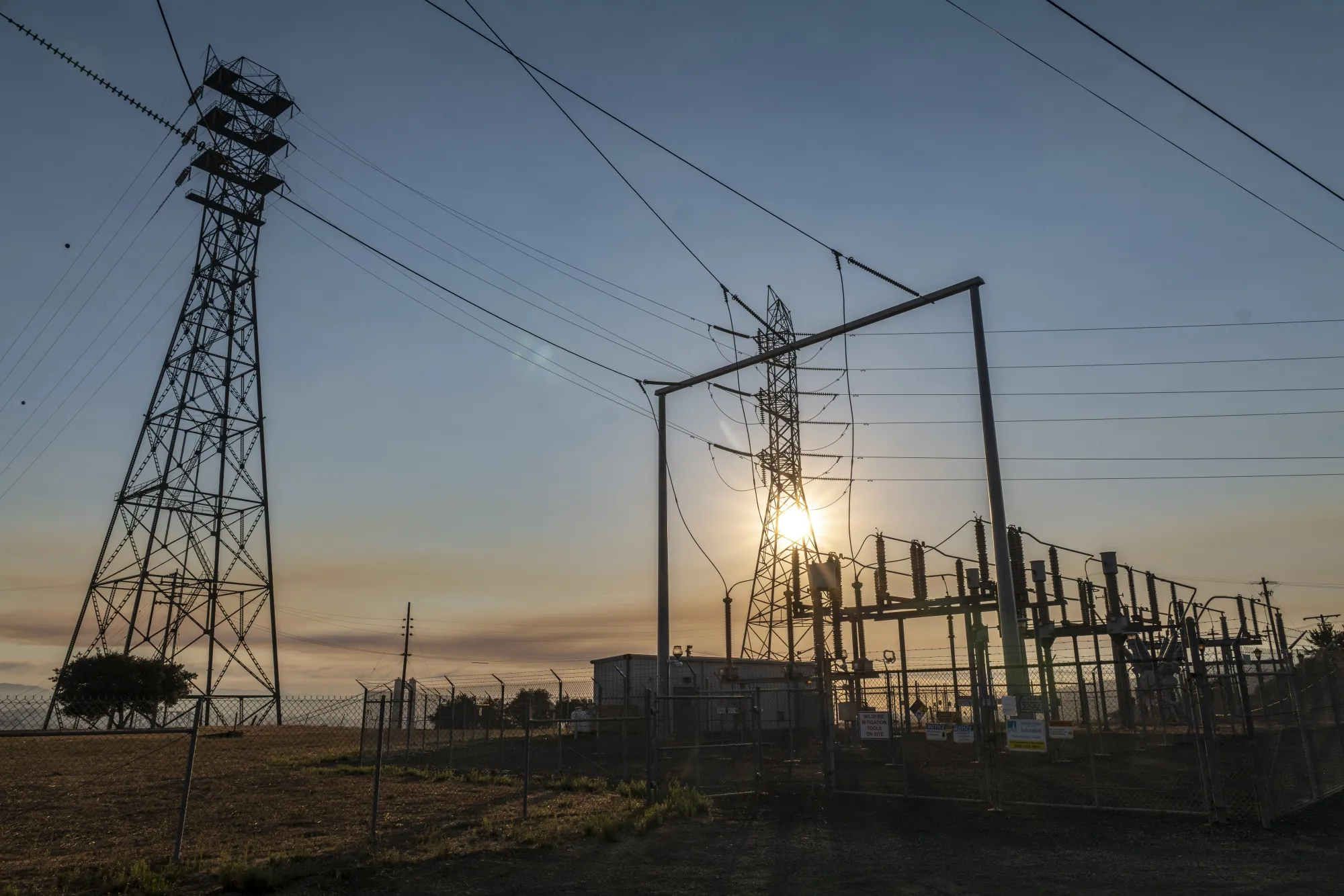 加利福尼亞州克羅克特市,太平洋天然氣與電力公司變電站旁的輸電塔。攝影師:大衞·保羅·莫里斯/彭博社由於全州範圍內乾燥的氣候條件增加了野火風險,加州公用事業公司正在考慮實施斷電措施。