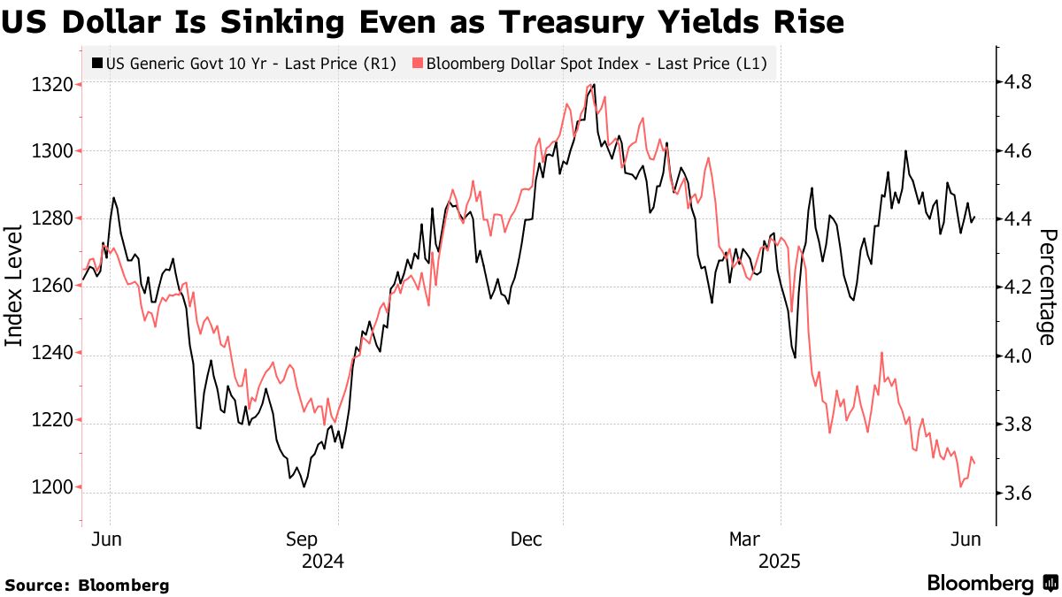 特朗普4月宣佈提高全球關税,引發了美國通脹加速和經濟增速放緩的擔憂。總統還敦促立法者通過一項税收與支出法案,分析師預計該法案將在未來十年使赤字增加數萬億美元。