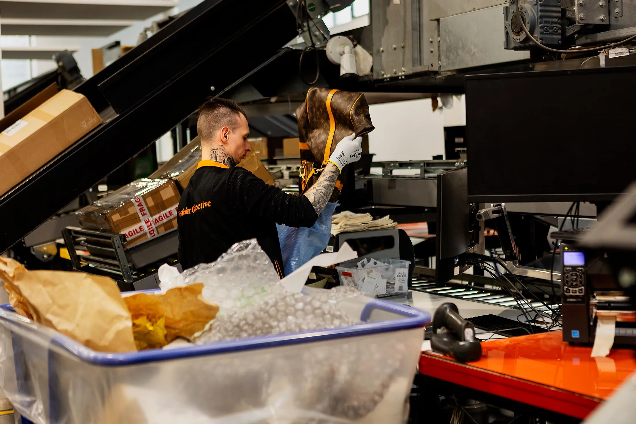 用紫外線燈掃描快遞箱。攝影師:朱莉·格拉絲伯格為《彭博商業週刊》拍攝隨着二手奢侈品銷售額持續攀升——據貝恩公司數據,2024年增長7%至超500億美元——其增速已超越全新奢侈品市場,打擊仿冒品對二手奢侈品供應商至關重要。Vestiaire Collective去年營收激增20%,不過這傢俬營企業拒絕披露完整業績。總部位於舊金山的競爭對手The RealReal(擁有十餘家實體門店)2024年銷售額增長9.3%,突破6億美元。而歐洲最大二手交易平台Vinted於2023年推出的奢侈品品類雖未透露細節,但宣稱發展勢頭良好。隨着進口美國的奢侈品關税已導致價格上漲至少10%,且可能進一步攀升,二手市場很可能持續擴張。