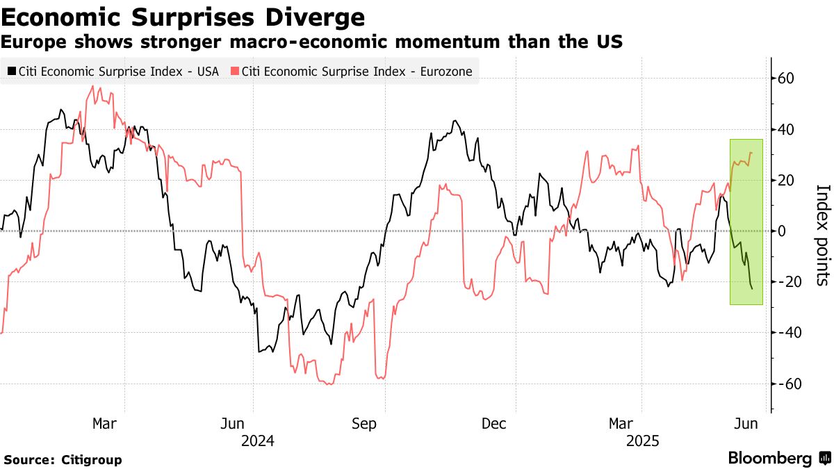 隨着經濟前景改善,多數策略師不得不調整年初制定的保守目標,轉而追漲歐洲股市。美國股市"例外主義"遭遇挑戰、歐洲經濟前景向好,以及顯著的利差優勢,都推動資金押注該地區。