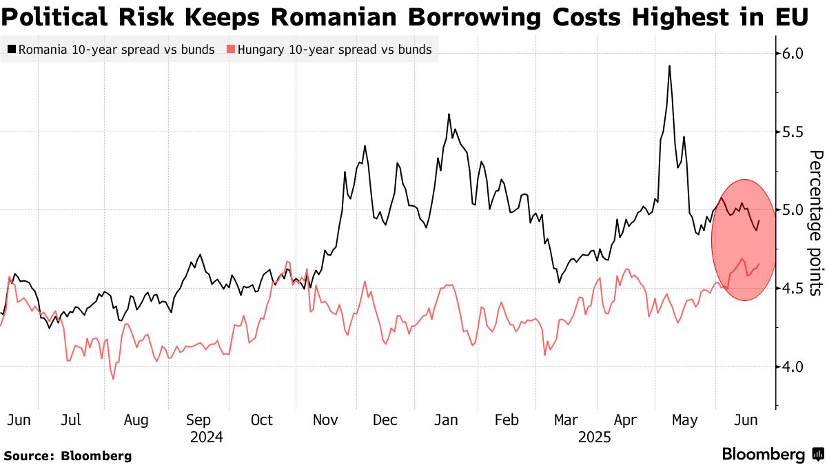 但羅馬尼亞的財政後果已成為核心議題,即將實施的支出削減和增税方案可能帶來政治風險。鑑於極右翼支持率激增,政治局勢變得尤為敏感。