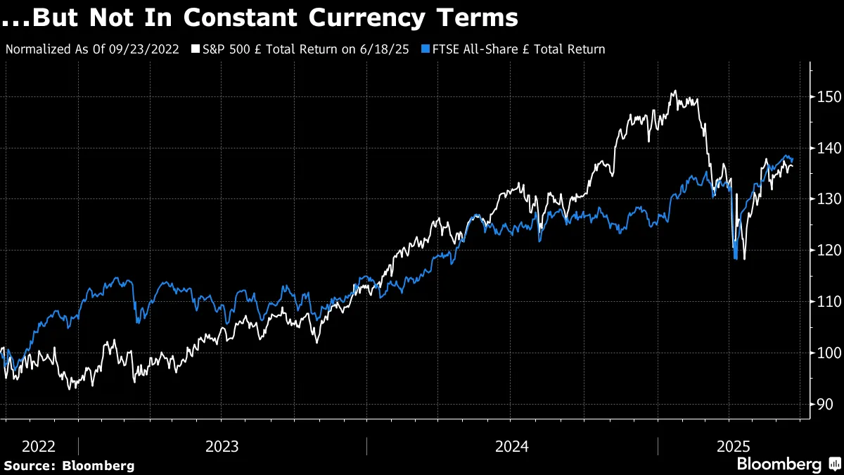 但當你將其轉換為英鎊時(你也可以用美元計算,實際結果相同,只是兩者漲幅約為70%而非36%),情況就變成了這樣:
