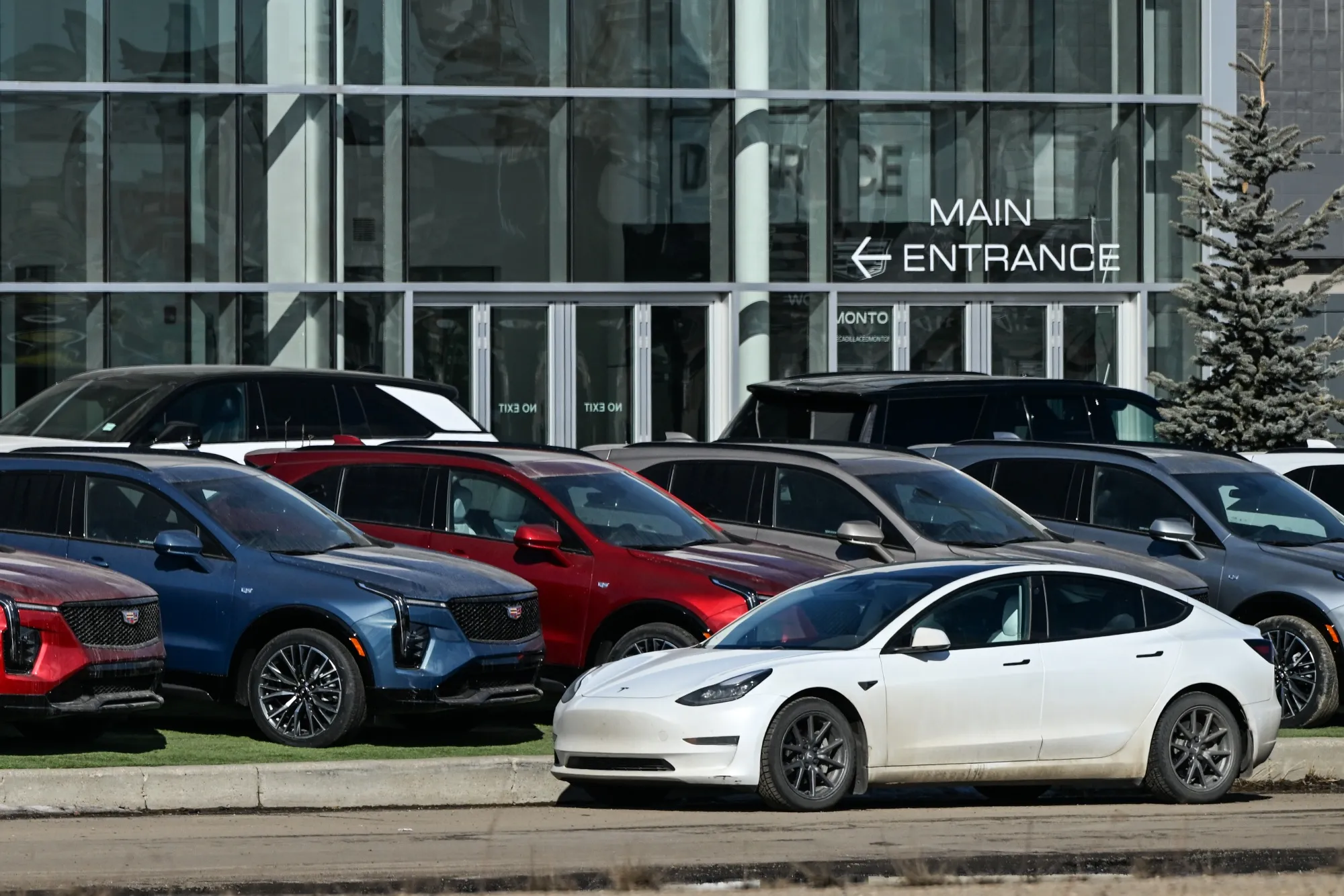 2025年3月,加拿大阿爾伯塔省埃德蒙頓市一家汽車經銷商。攝影師:Artur Widak/NurPhoto/Getty Images隨着關税引發的汽車搶購潮似乎告一段落,加拿大消費者面臨的壓力在上月變得更加明顯。