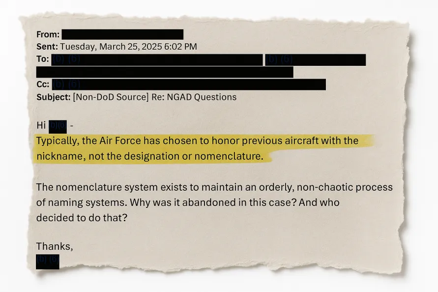 你猜我做了什麼。我向空軍提交了《信息自由法》請求,要求獲取與這款新型戰鬥機命名最終決策相關的各類記錄。