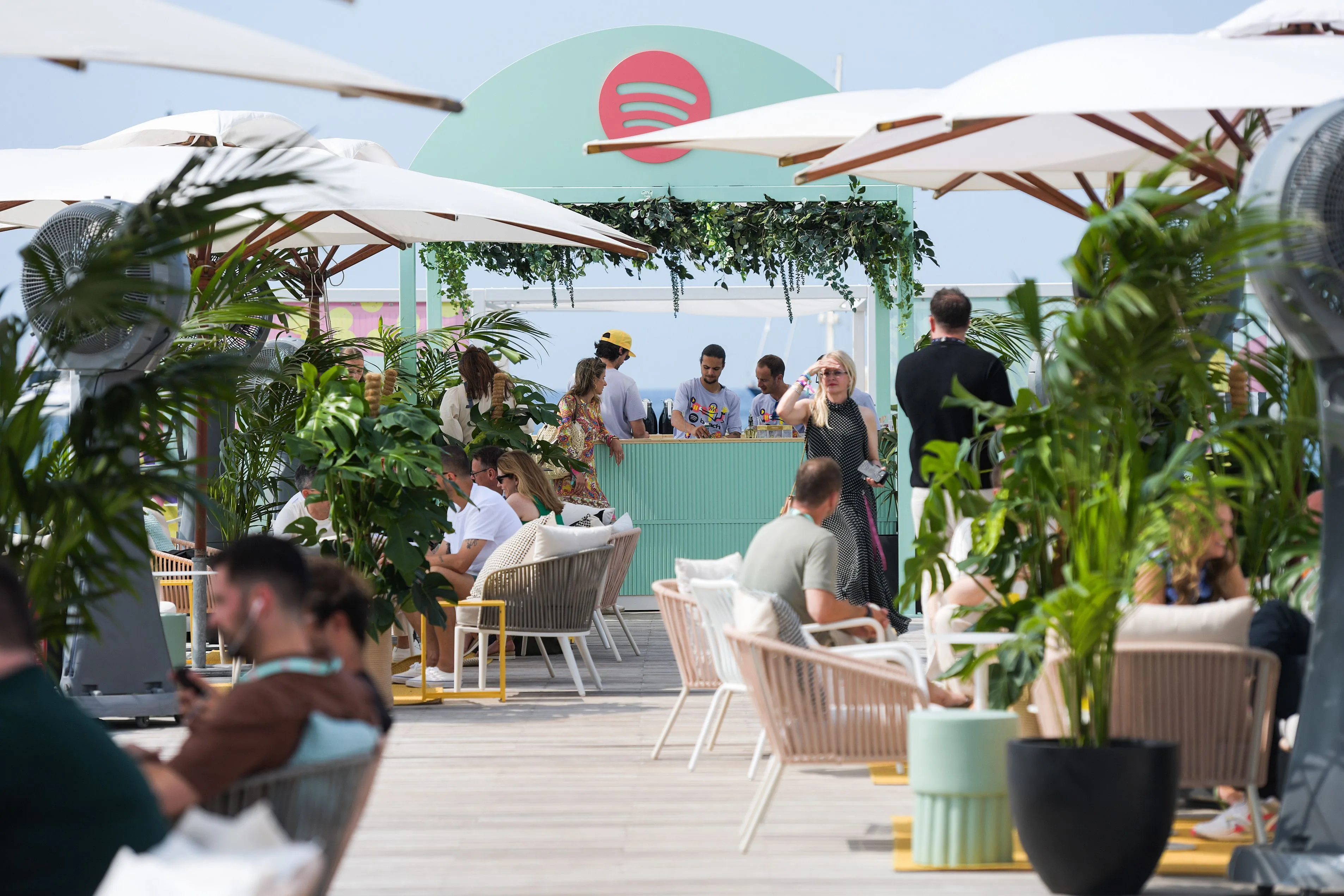 2025年戛納國際創意節期間的Spotify海灘。總得有人來做這件事。攝影師:安東尼·瓊斯/蓋蒂圖片社像他們這樣的運動員真正來的原因不僅僅是為了免費法國之旅。登台之後,他們正在與品牌會面,以賺取更多錢。一家機構的一名成員告訴我,外界會驚訝於有多少交易是在幾張海灘邊的桌子上完成的。一位NFL球員告訴我,他再也不會錯過戛納國際創意節了,因為它太有利可圖了。