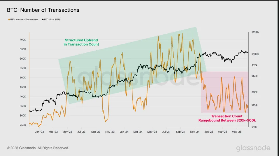 報告稱,比特幣網絡每日結算交易數已從2024年的60-70萬筆降至今年約50萬筆。與此同時,結算金額保持強勁態勢,今年每日轉移的加密貨幣超過70億美元。