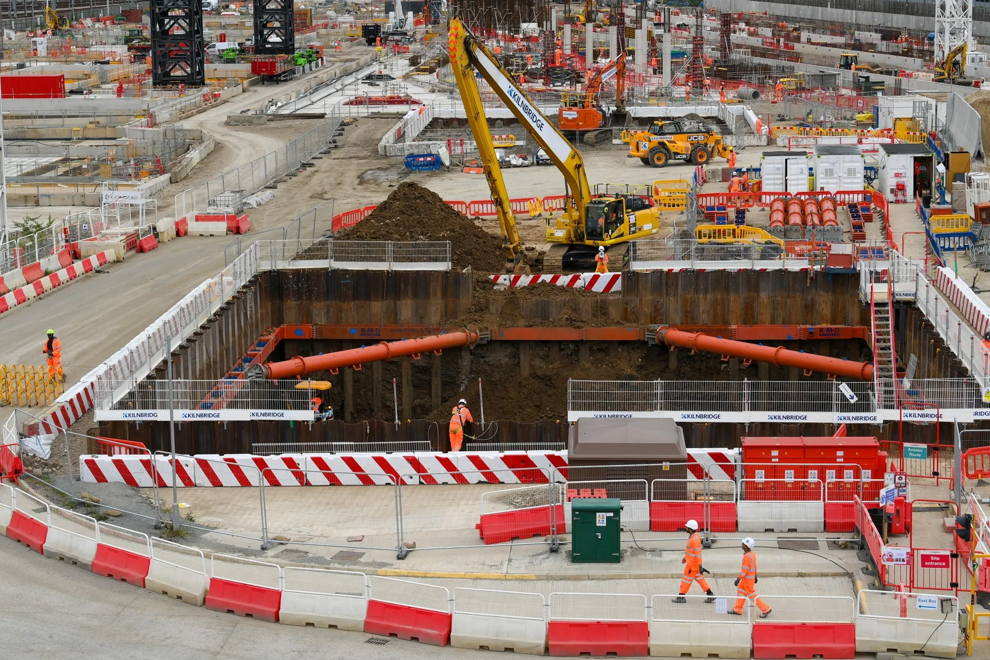 5月29日,英國倫敦老橡樹公地HS2高鐵建設工地的工人們。