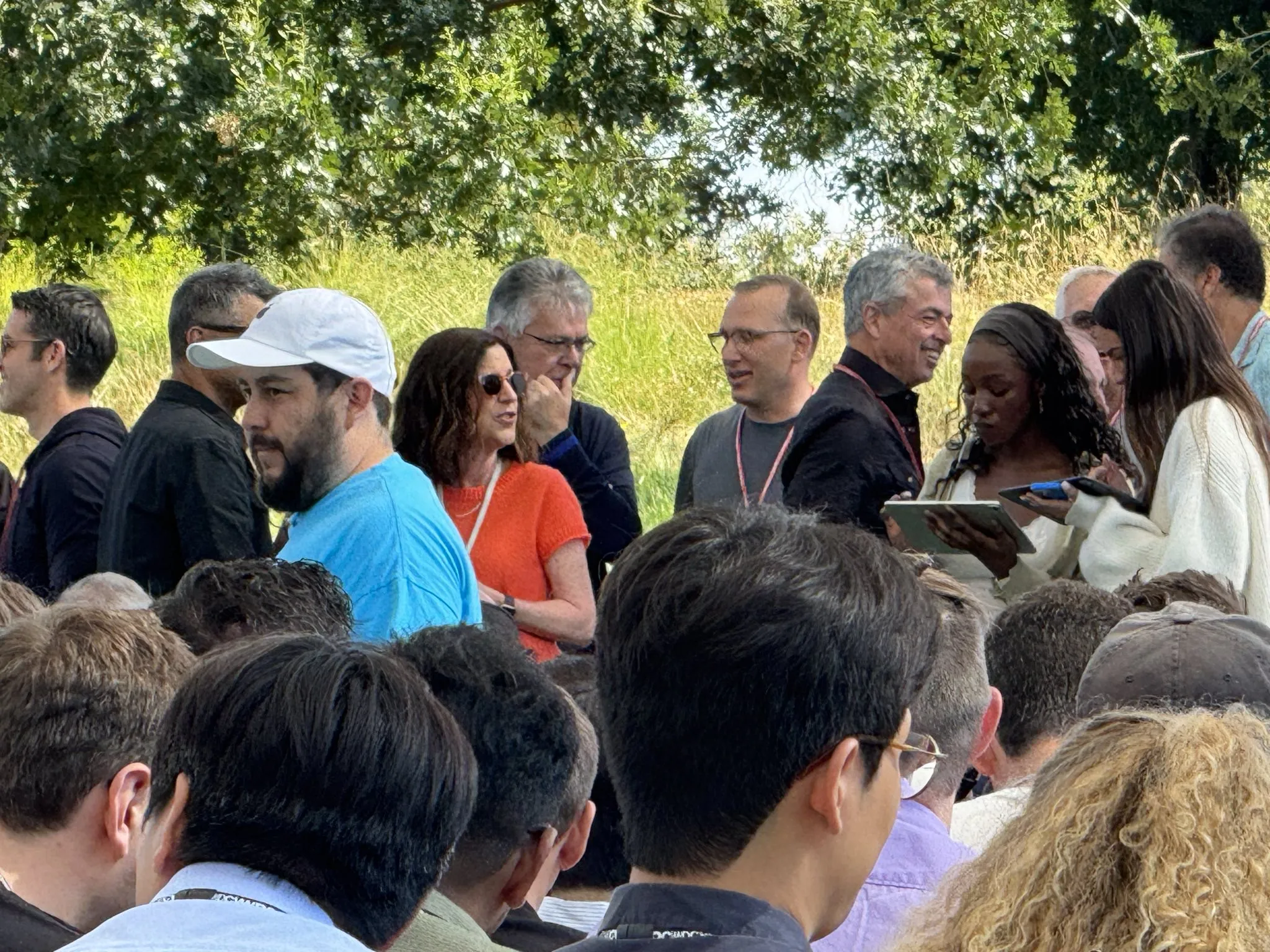 蘋果人工智能主管約翰·詹南德雷亞和收購主管阿德里安·佩裏卡(中)在WWDC前交談。圖片來源:瑞安·艾薩克斯在硅谷的巨頭中,蘋果公司長期以來一直有着不同尋常的收購策略。該公司有史以來最大的一筆收購是2014年以30億美元收購Beats,而蘋果整個歷史上只有三筆交易總額達到或超過10億美元。