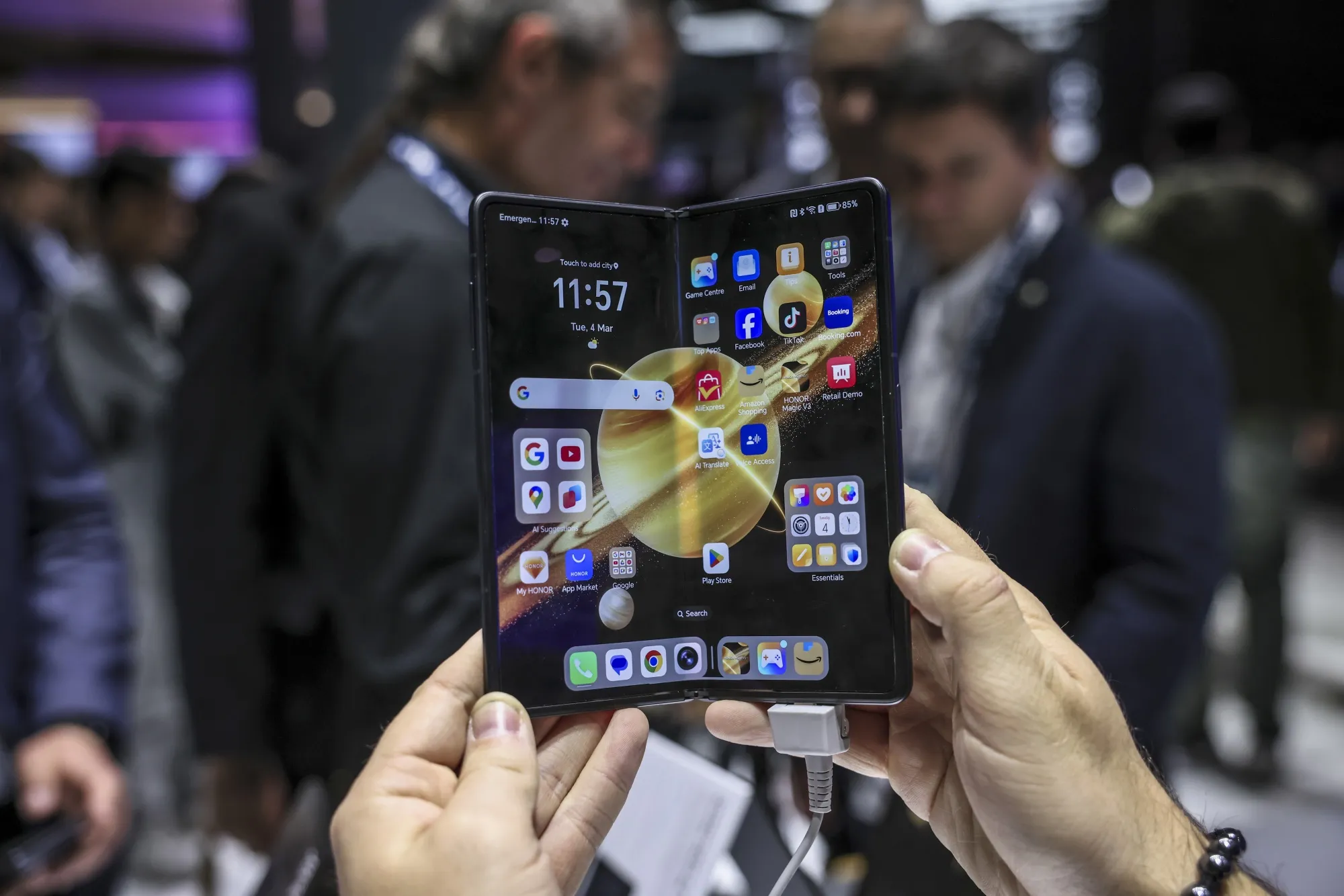 榮耀Magic V3摺疊屏手機攝影師:Angel Garcia/彭博社**榮耀下一代摺疊手機厚度僅8.8毫米。**中國頭部手機制造商榮耀將跳過原定命名的V4版本,直接於下月推出Magic V5。榮耀向《Power On》透露,新機摺疊狀態下厚度為8.8毫米,極有可能成為全球最薄摺疊手機。前代V2厚度9.9毫米,現款V3為9.2毫米。公司表示其最新機型將薄於三星電子即將於7月發佈的Z Fold 7。而蘋果則計劃在2026年底推出摺疊屏設備。