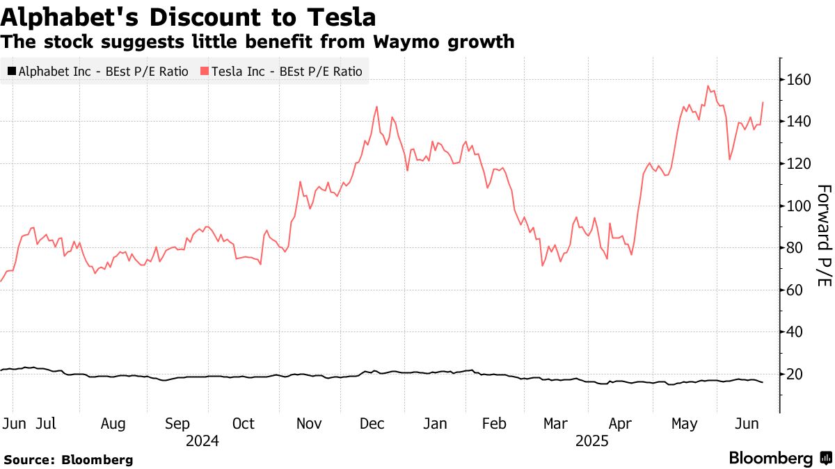 字母公司(Alphabet)在無人駕駛出租車競賽中缺乏特斯拉的股票熱度——彭博社
