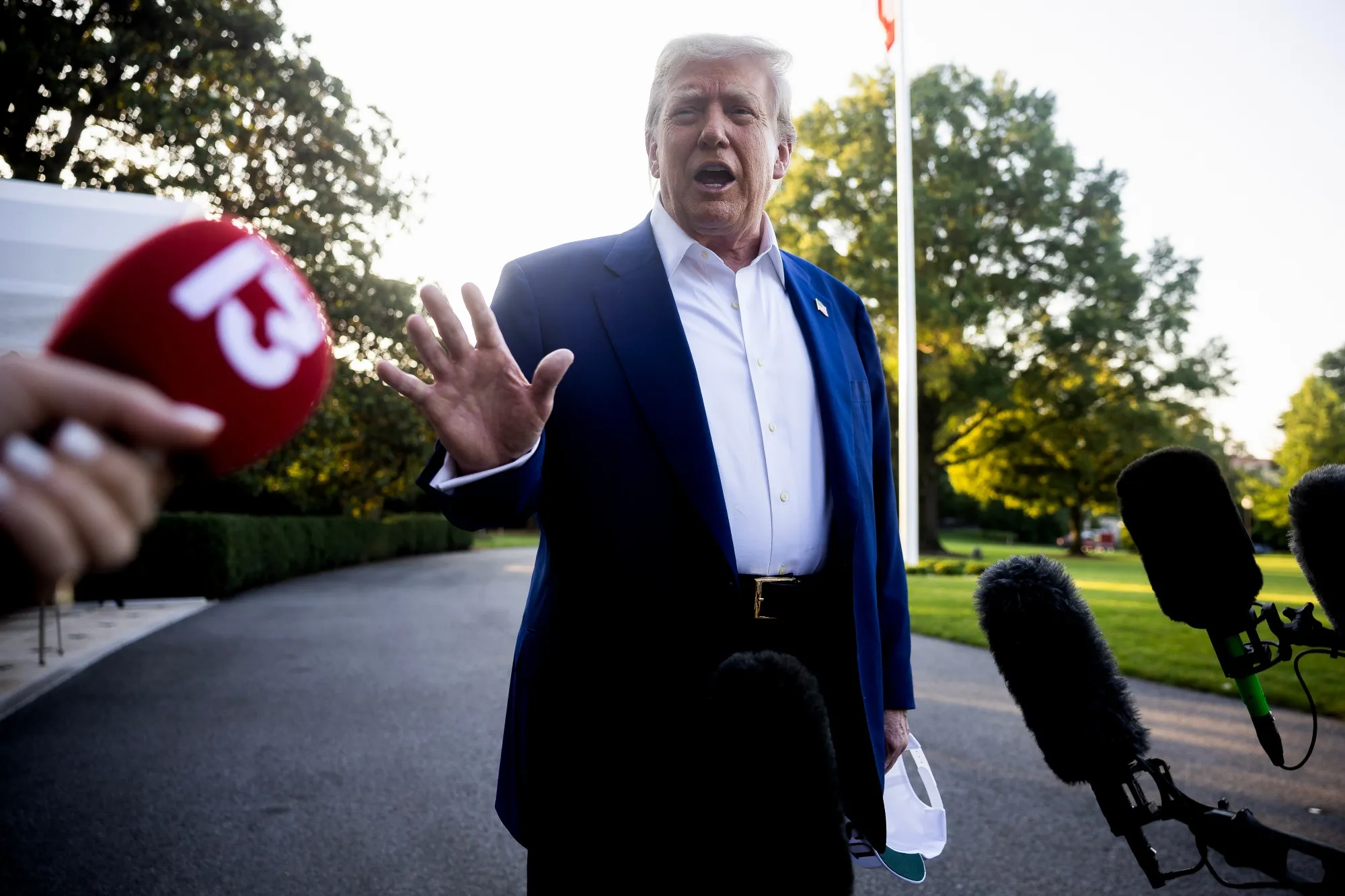 6月24日,唐納德·特朗普總統在登上海軍陸戰隊一號前於白宮發表講話。