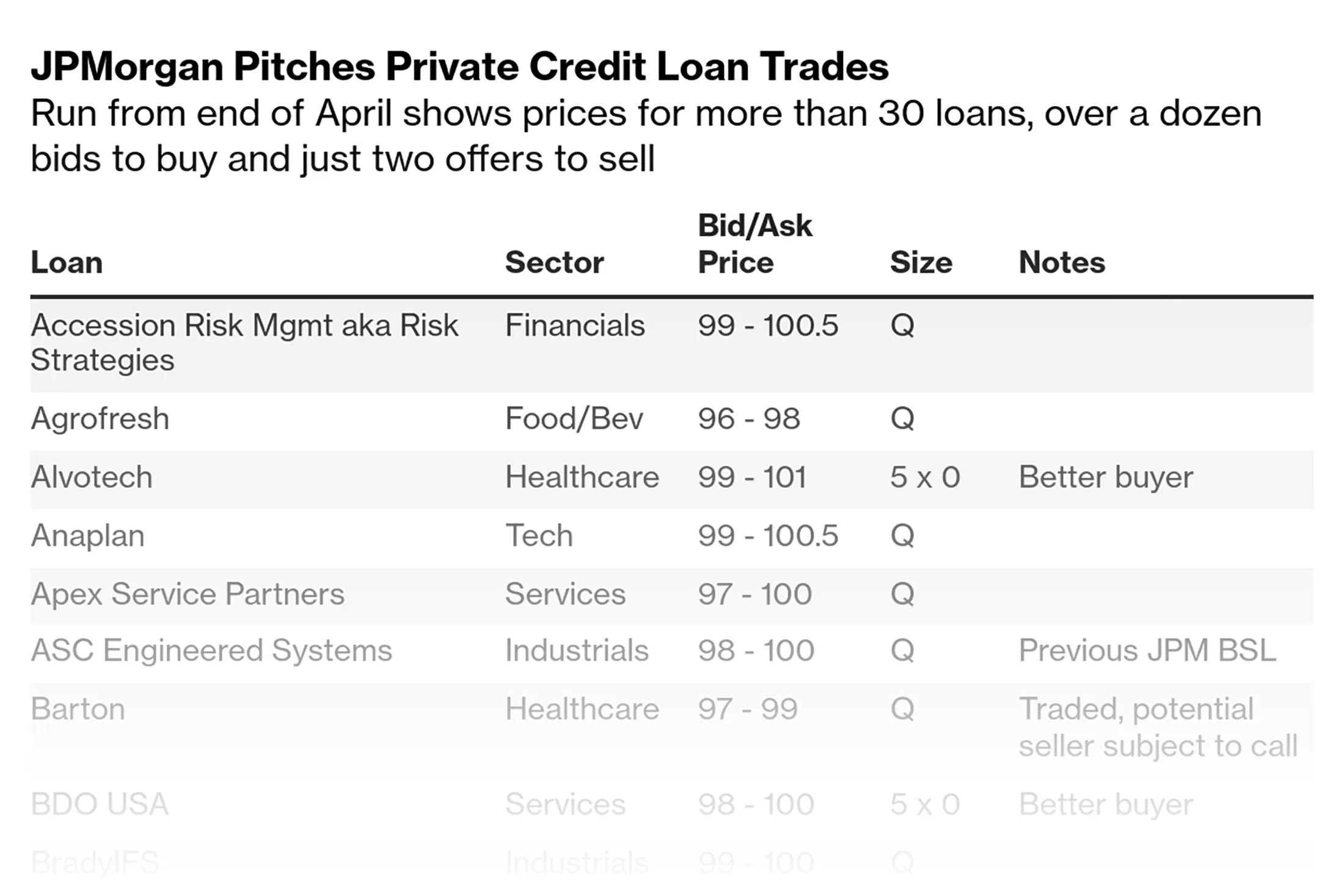四月底,摩根大通最新一輪貸款交易清單出爐。