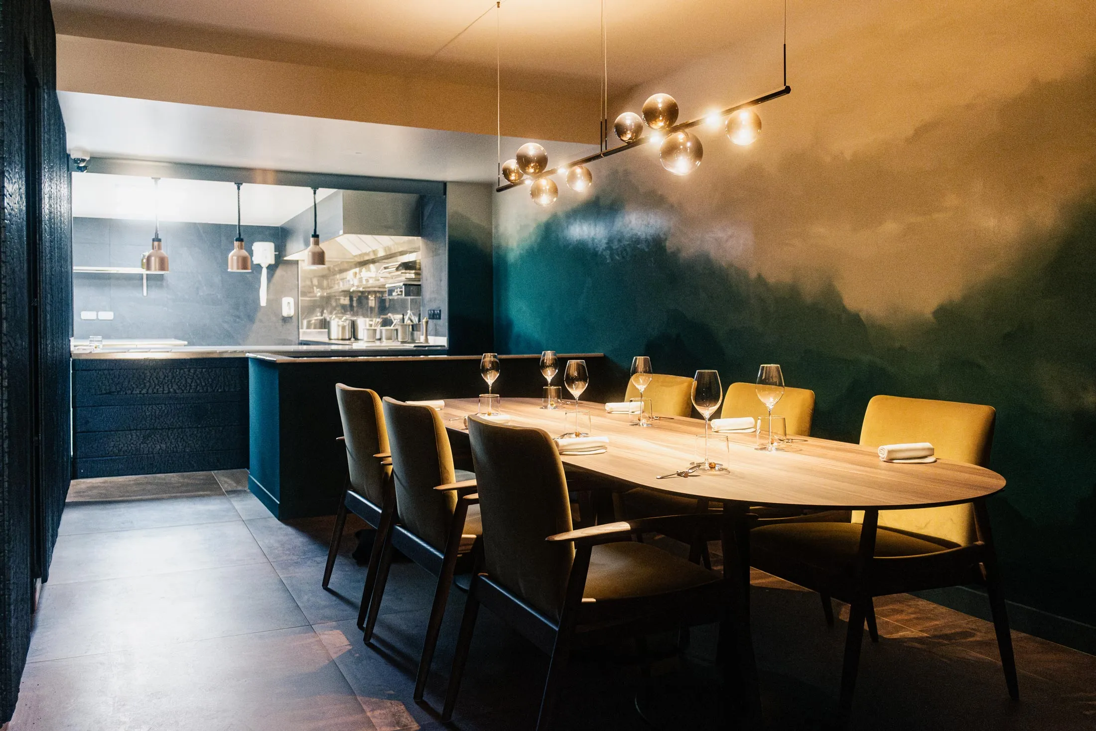 歐文餐廳廚房邊的廚師餐桌。圖片來源:Pausecom新開業:歐文餐廳,巴黎第八區位於巴黎富裕的第八區核心地帶,毗鄰三條著名大道形成的“金三角”,這是歐文·杜蘭主廚的首家餐廳。極簡現代的空間佈局包含22個座位的私密用餐區,以及更專屬的8人廚師餐桌——直接面向廚房開放,讓食客能近距離欣賞專業廚師團隊的精湛廚藝表演。